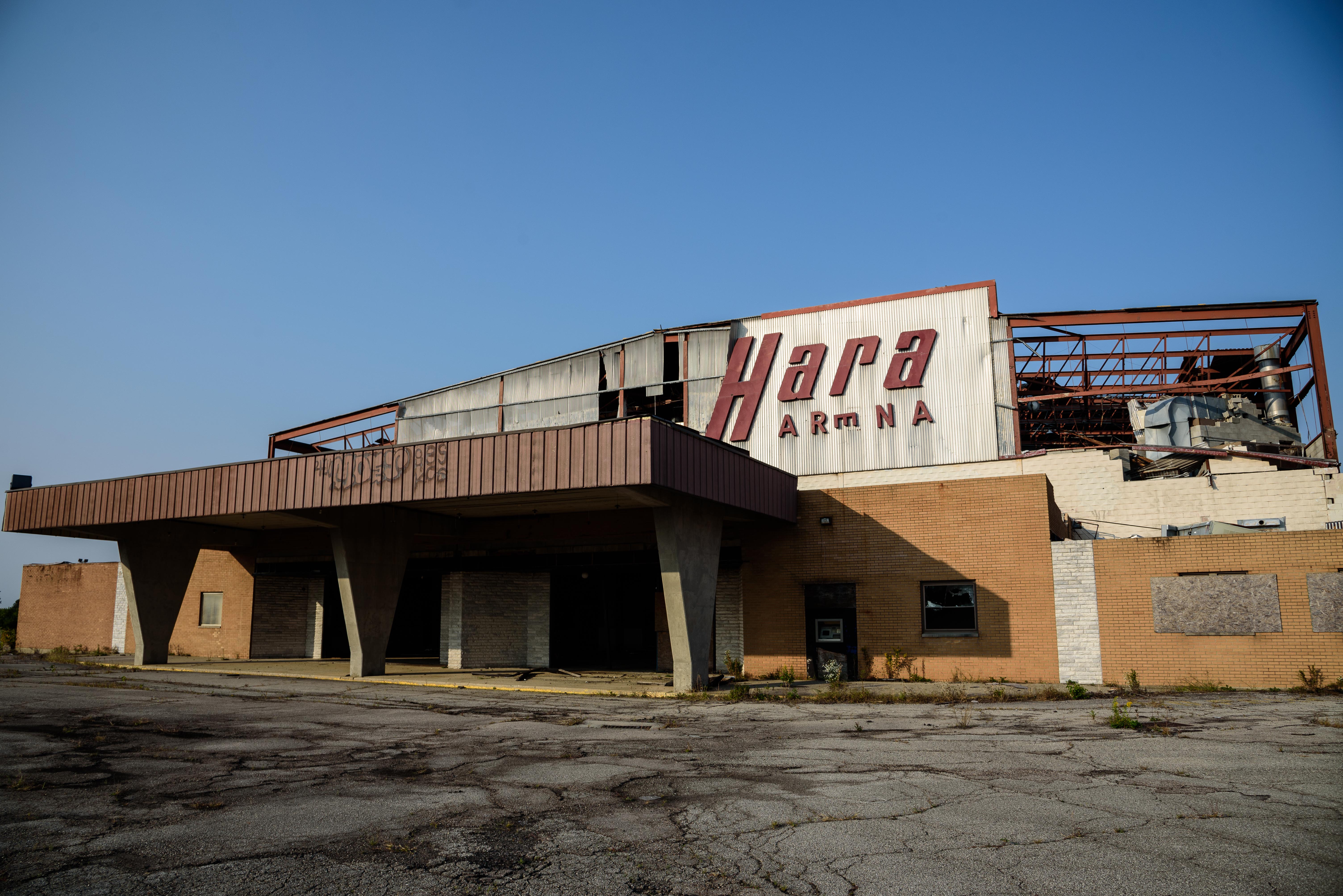 • Tornado damage: Hara Arena was one of thousands of properties damaged by the tornadoes that hit late at night on Memorial Day, May 27, in 2019.