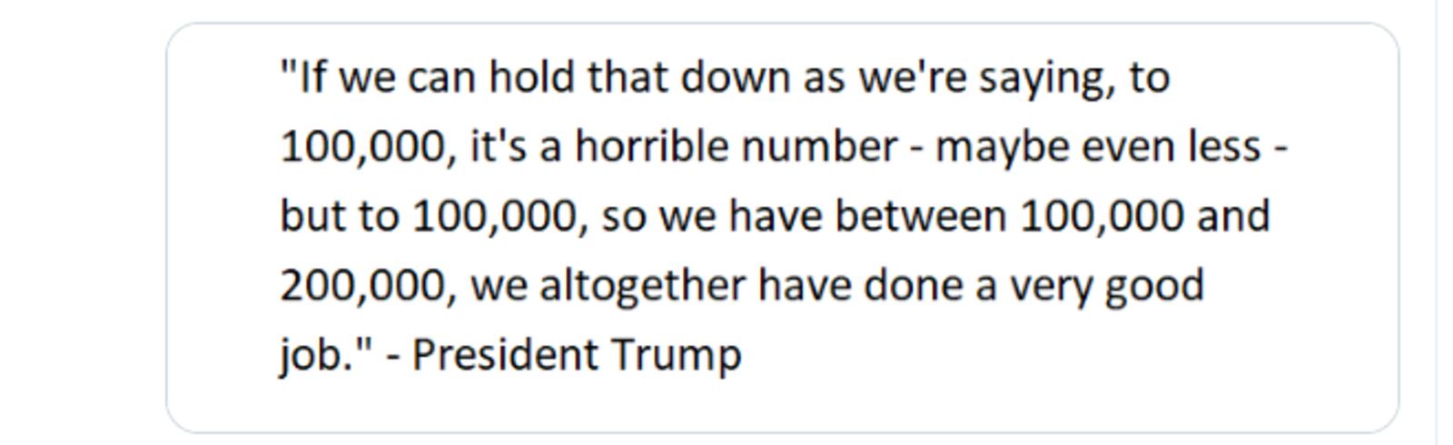 "And hopefully, we will keep the deaths down to a minimum," the President said, after telling Americans on Sunday that if his administration can keep deaths from the virus to 100,000, that would be a 'good job.'
