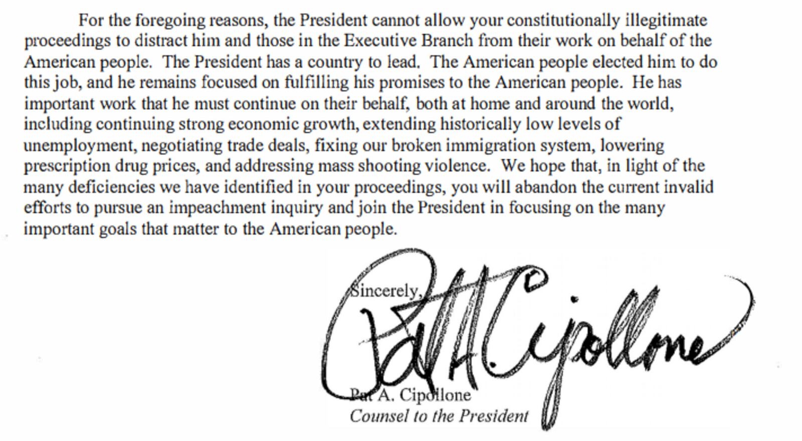 The Trump administration has no intention of cooperating with our "illegitimate" impeachment inquiry?