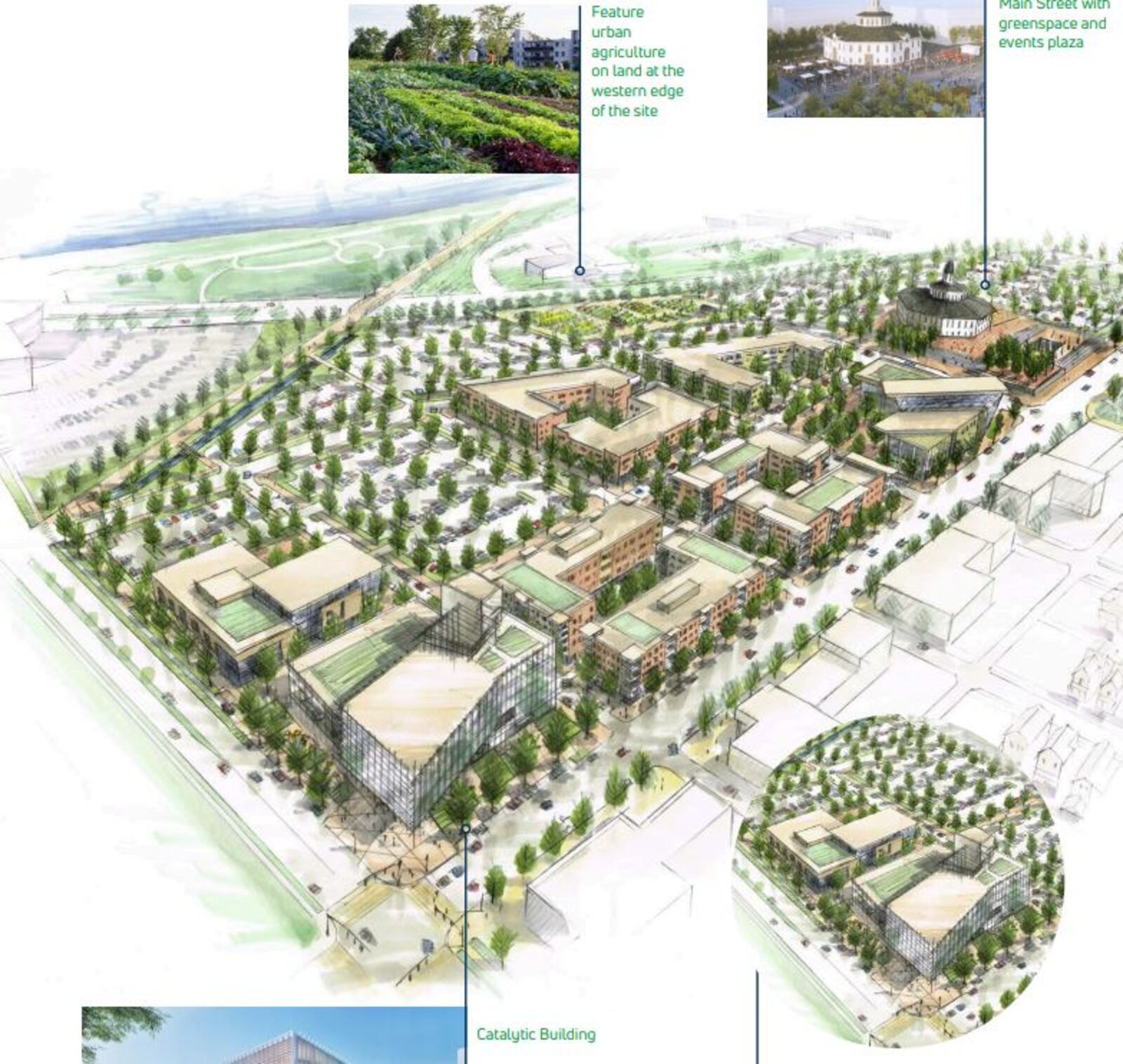 The project is led by onMain Inc., a development organization formed by Premier Health and the University of Dayton, which jointly own the 38-acre site between Stewart, South Main and Apple streets across from Miami Valley Hospital.
