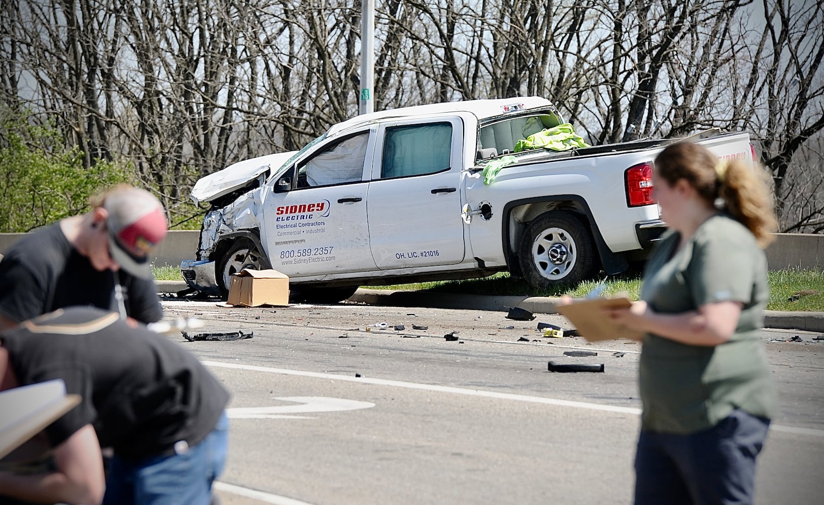 One person is dead following a two-vehicle crash Tuesday April 11, 2023, at the intersection of Dryden Road and East Dixie Drive/East Central Avenue in West Carrollton. MARSHALL GORBY \STAFF