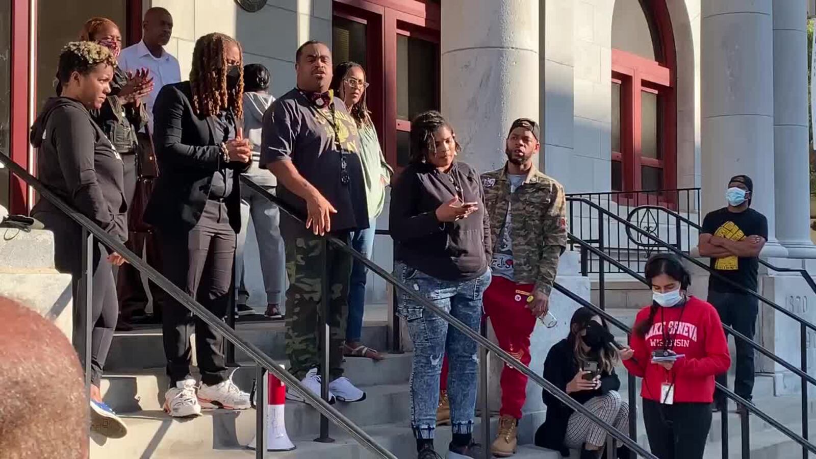 Outside city hall, Owensby’s mother, Caroline Smith, said, “I’m angry and upset, not just for my son but for every Black man, every Black woman.”
