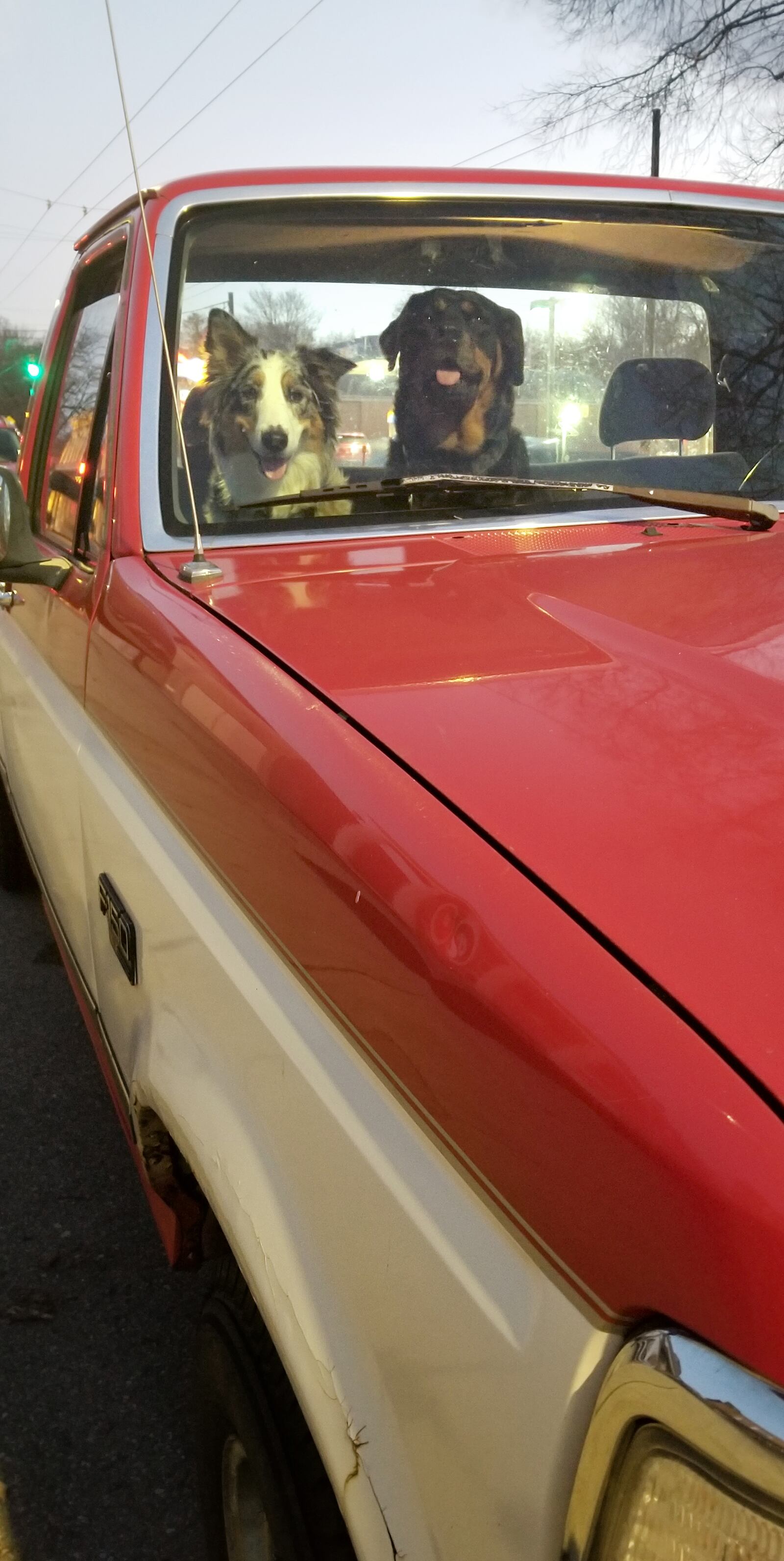 I love to shoot pool. I love to watch football. And I LOVE to take our dogs for rides in my pickup truck.