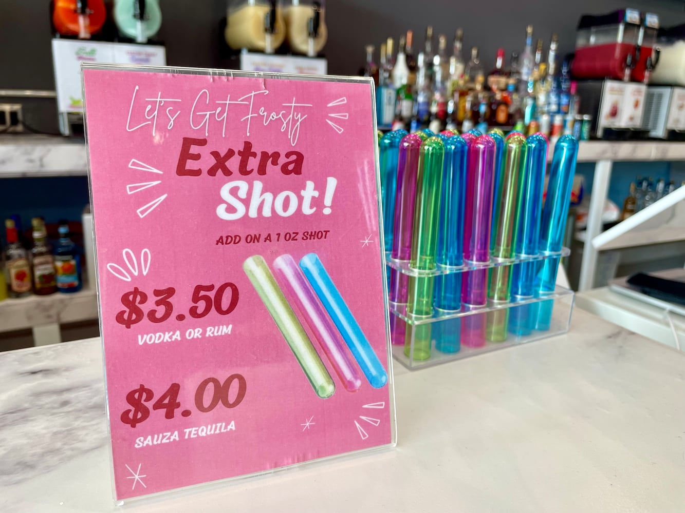 The Frost Factory, a boutique bar with boozy slushies, cocktails, shots and more, is now open at Austin Landing. NATALIE JONES/STAFF