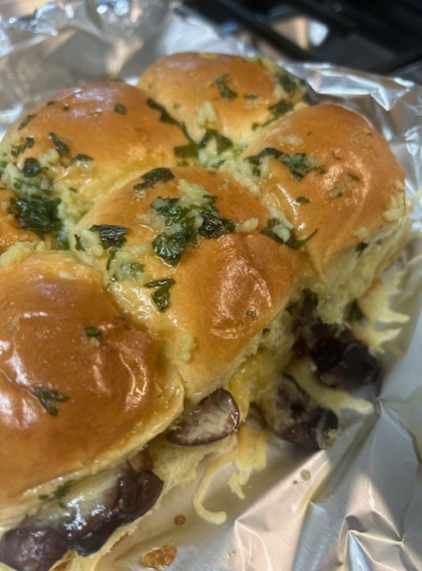 RED-WINE MUSHROOM SLIDERS WITH GOUDA CHEESE