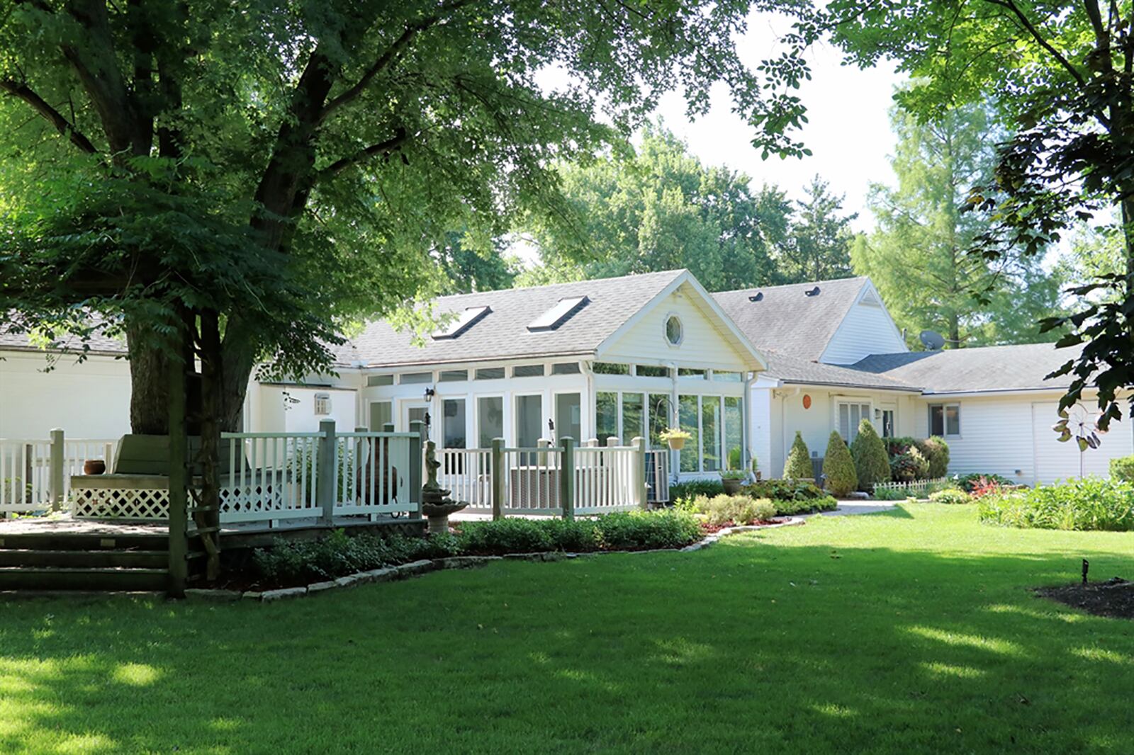 Highlights: About 4,080 sq. ft., 3-5 bedrooms, 4 full baths, gas fireplace, bay window, 2 four-season rooms, hobby room, guest suite, workshop, garden shed, bonus room, updated bathrooms, updated kitchen, updated flooring, skylights, rear deck, paver-brick patio, 4-car garage, water features, storage shed, putting green, fenced yard, circular driveway