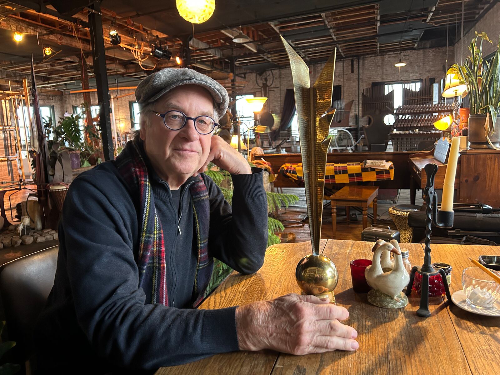 Michael Bashaw has worked out of the same art studio in the Davis-Linden Building in East Dayton for the past 44 years. The expansive space is a cabinet of curiosities of story-filled objects, whether it’s an old friend’s piano, an overflowing bookcase, or one of the huge metal “Sound Sculptures” that function as percussion instruments.