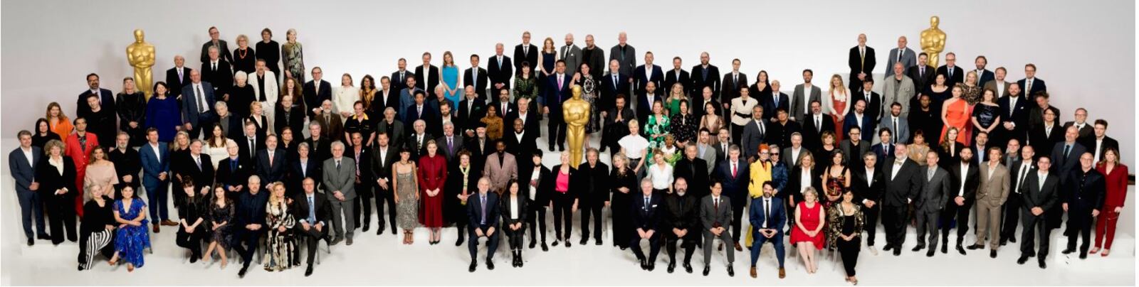 The entire class as photographed by Todd Wawrychuk: David Acord; Matt Aitken; Waad al-Kateah; Kristen Anderson-Lopez; Elena Andreicheva; Bonnie Arnold; Vivian Baker; Kirstine Barfod; Kathy Bates; Noah Baumbach; Jarin Blaschke; Steven Bognar; Bong Joon Ho; Shane Boris; Mark Bridges; Andrew Buckland; Bryan Buckley; Chris Butler; Greg Butler; Joshuah Brian Campbell; Matthew A. Cherry; Cho Won Woo; Jérémy Clapin; Josh Cooley; Petra Costa; Marshall Curry; Robert De Niro; Roger Deakins; Dean DeBlois; Laura Dern; Leonardo DiCaprio; Naomi Donne; Marc du Pontavice; Jacqueline Durran; Sigrid Dyekjaer; Carol Dysinger; Tom Eagles; Russell Earl; Cynthia Erivo; Leandro Estebecorena; Feras Fayyad; Dennis Gassner; Atanas Georgiev; Greta Gerwig; David Giammarco; Delphine Girard; Paul Gooch; Jinko Gotoh; Stephane Grabli; Maria Gracia Turgeon; Regina Graves; Jeff Groth; Hildur Guônadóttir; Roger John Guyett; Nancy Haigh; Han Jin Wan; John Haptas; Pippa Harris; Pablo Helman; Kathryn Hendrickson; David Heyman; Kazu Hiro; Rian Johnson; Tom Johnson; Andrew R. Jones; Meryam Joobeur; Gary Byung-Seok Kam; Daria Kashcheeva; Sami Khan; Travis Knight; Tamara Kotevska; Kwak Sin-ae; Lee Ha Jun; Matt Lefebvre; Robert Legato; Bradford Lewis; Barbara Ling; Robert Lopez; Ladj Ly; Tod Maitland; James Mangold; Paul Massey; Anthony McCarten; Michael McCusker; Callum McDougall; Shannon McIntosh; Damien Megherbi; Sam Mendes; Christian P. Minkler; Michael Minkler; Anne Morgan; Steve Morrow; Smriti Mundhra; Alan Robert Murray; Joanne Natasegara; Carthew Neal; Elliot Newman; Randy Newman; Thomas Newman; Mark Nielsen; Laura Nix; Tom Ozanich; Sergio Pablos; Al Pacino; Amy Pascal; Tiago Pavan; Christopher Peterson; Arianne Phillips; Todd Phillips; Yves Piat; Brad Pitt; Sandy Powell; Rodrigo Prieto; Jonathan Pryce; Florence Pugh; Jeff Reichert; Julia Reichert; Jonas Rivera; Guillaume Rocheron; Marisa Roman; Jane Rosenthal; Mayes C. Rubeo; Kristine Samuelson; Lee Sandales; Colette Sandstedt; Neal Scanlan; Thelma Schoonmaker; Nelson Sepulveda; Bob Shaw; Lawrence Sher; Scott Silver; Siqi Song; Wylie Stateman; Ljubo Stefanov; Rosana Sullivan; Arianne Sutner; Donald Sylvester; Quentin Tarantino; Oliver Tarney; Rachael Tate; Bernie Taupin; Jayne-Ann Tenggren; Charlize Theron; Emma Tillinger Koskoff; Karen Rupert Toliver; Jenno Topping; Patrick Tubach; Arjen Tuiten; Dominic Tuohy; Mark Ulano; Ra Vincent; Taika Waititi; Diane Warren; Edward Watts; David White; Krysty Wilson Cairns; Stuart Wilson; Chelsea Winstanley; Matthew Wood; Yang Jinmo; Yi Seung-Jun; Steven Zaillian; Renée Zellweger; Dean Zupancic