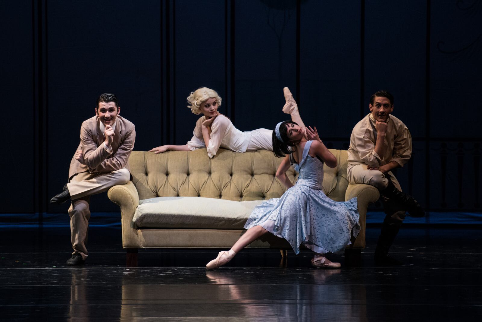 The narration for the ballet comes directly from the book as told by the character of Nick Carraway. “The storytelling in this production is a blissful blend of dance, narration, and music/song,” Cordes says. “I think I would describe Nick as the sensible observer who guides the story with passages from the book and then passes the baton off to the dancers. Although the majority of the story is told through dance, the narration provides another element to enhance the beautiful work of the dancers. Early in the ballet there is a moment where narrator Nick and dancer Nick switch places to establish the convention of the piece.”