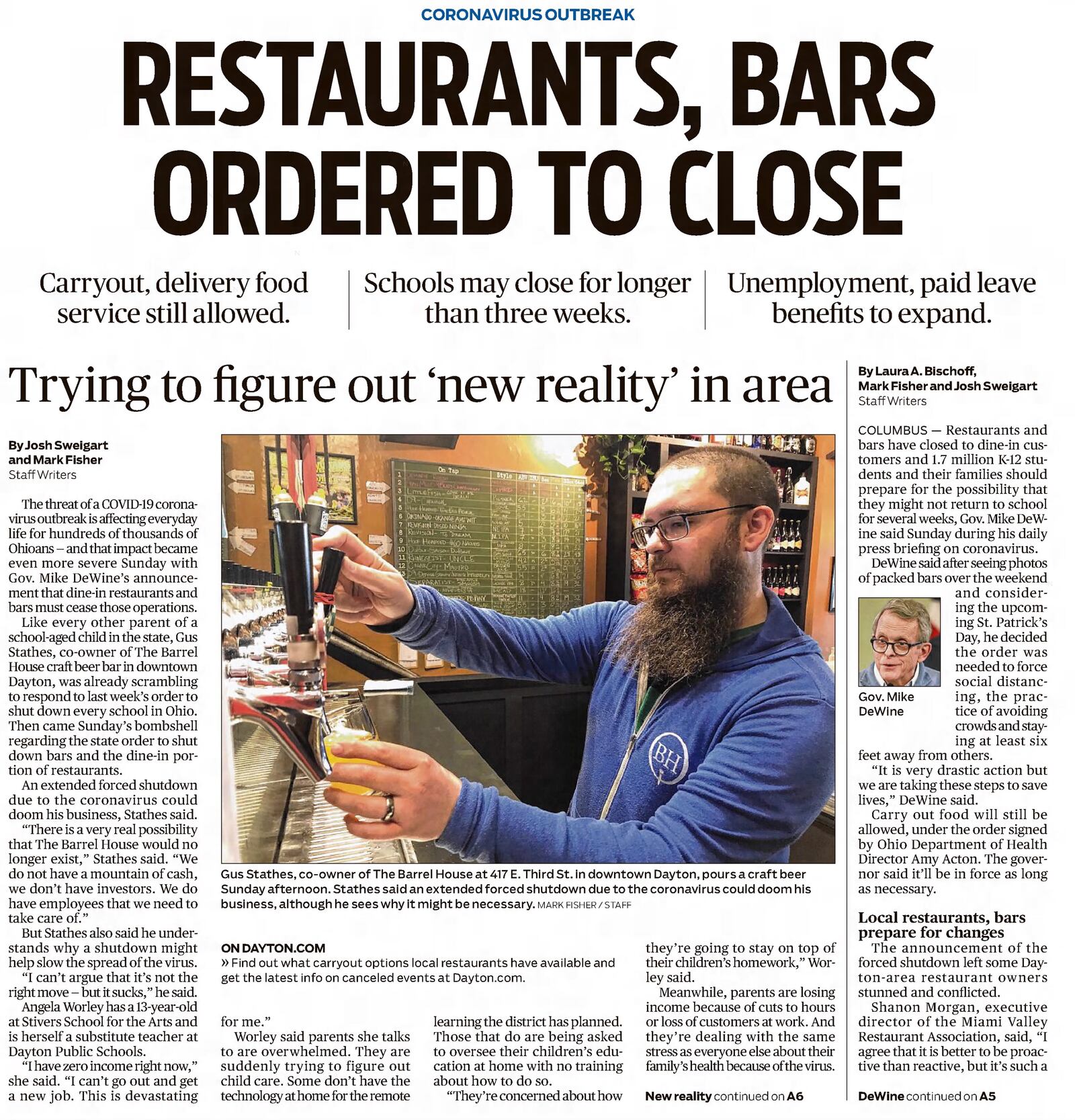 DeWine said that after seeing photos of packed bars over the weekend and considering the upcoming St. Patrick’s Day, he decided the order was needed to force social distancing, the practice of avoiding crowds and staying at least six feet away from others.