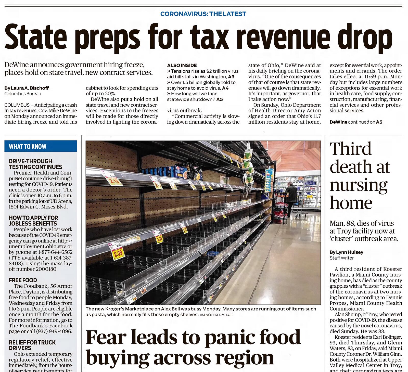 Tuesday, March 24, 2020: State preps for tax revenue drop