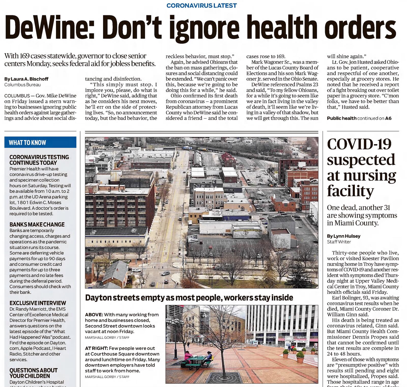 Saturday, March 21, 2020: DeWine: Don’t ignore health orders