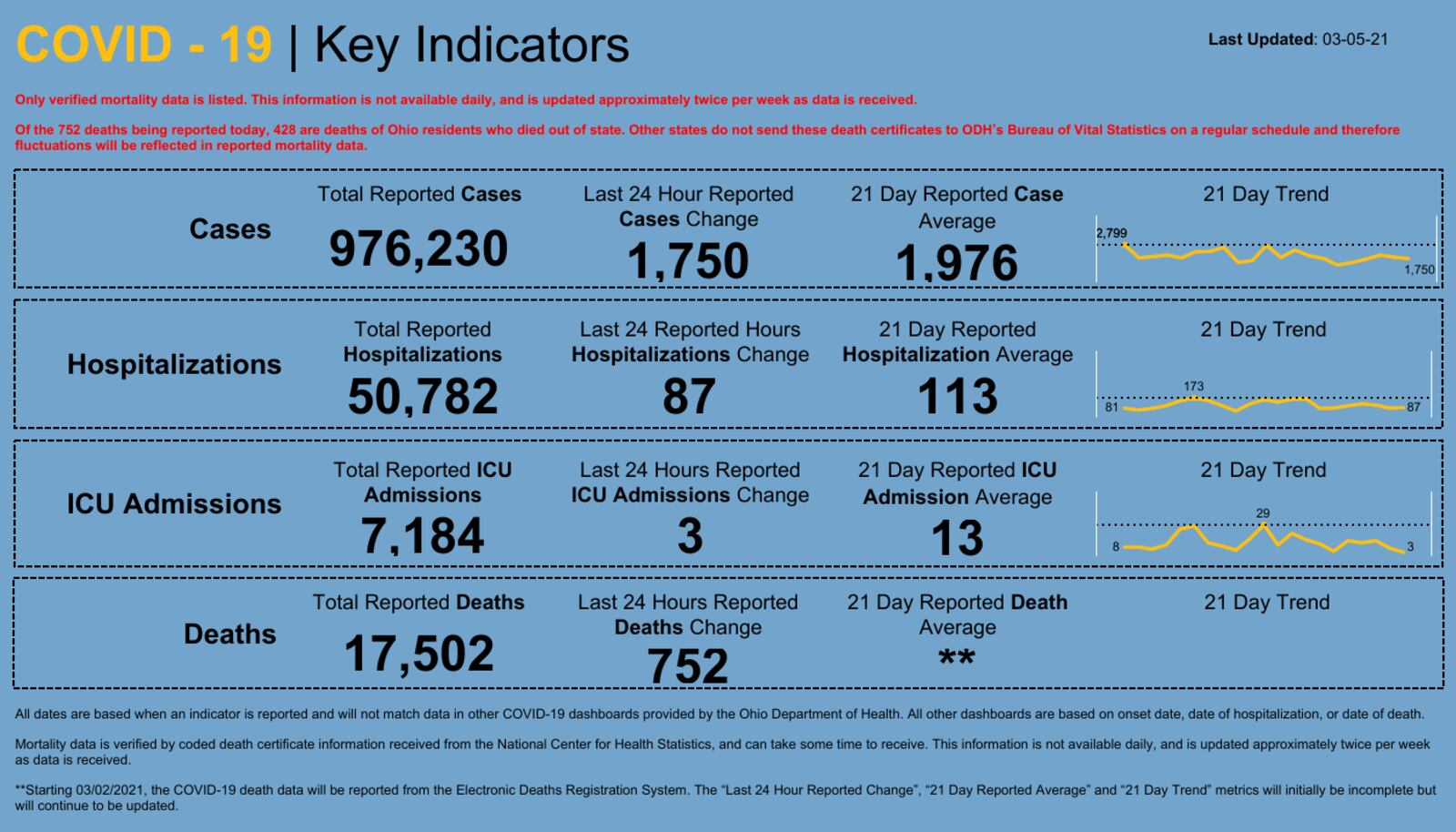 The state reported 752 COVID deaths Friday, including 428 Ohioans who died outside of the state.