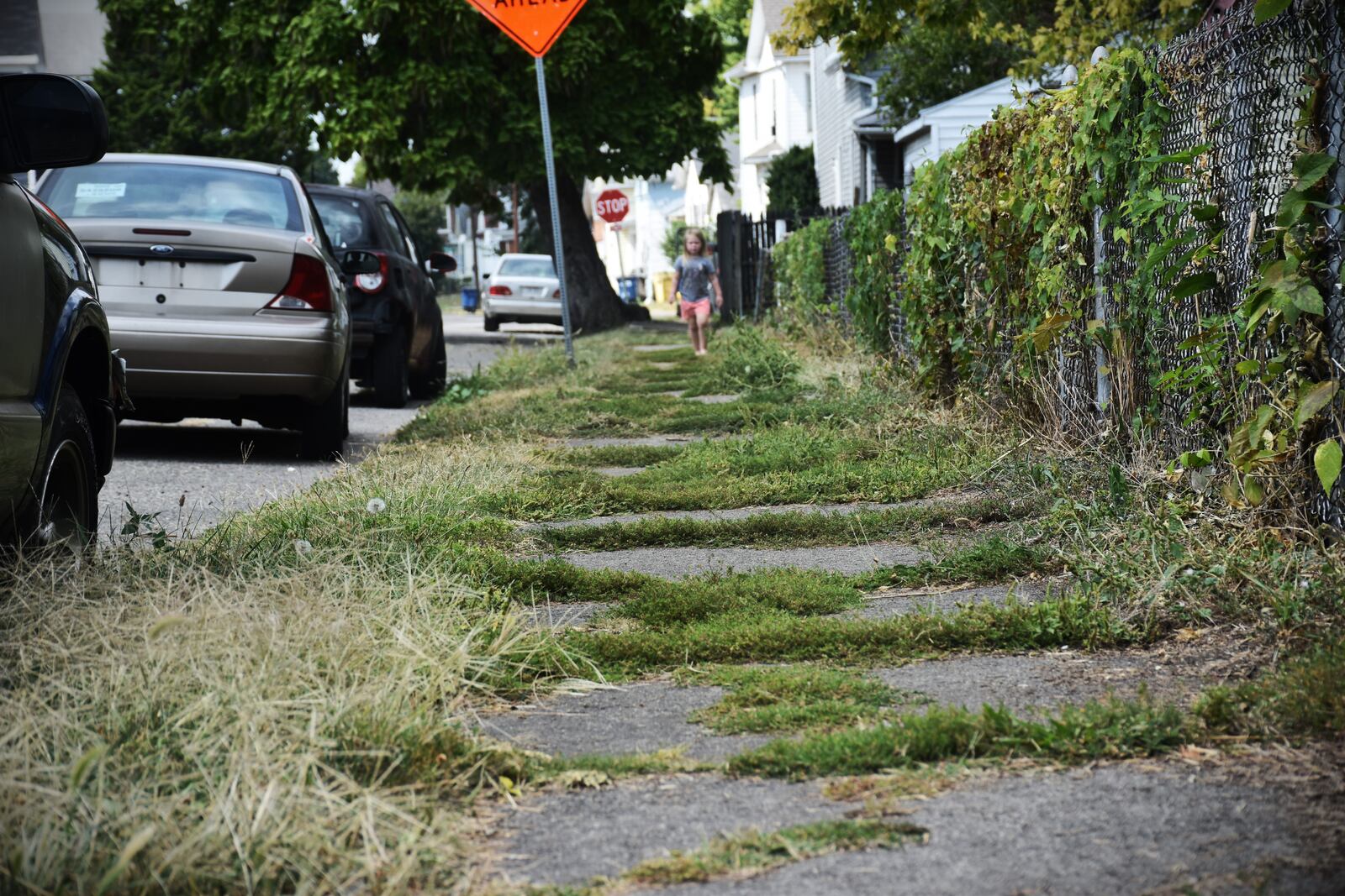 Some sidewalks are in poor condition and have uneven or damaged walking surfaces that create tripping hazards and make it difficult to get around.