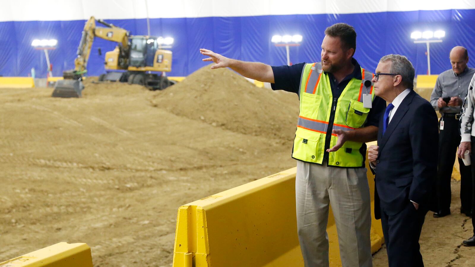 Drake visited the company’s Kellenberger Road plant to welcome a tour bus from an industry group, the Association of Equipment Manufacturers.
