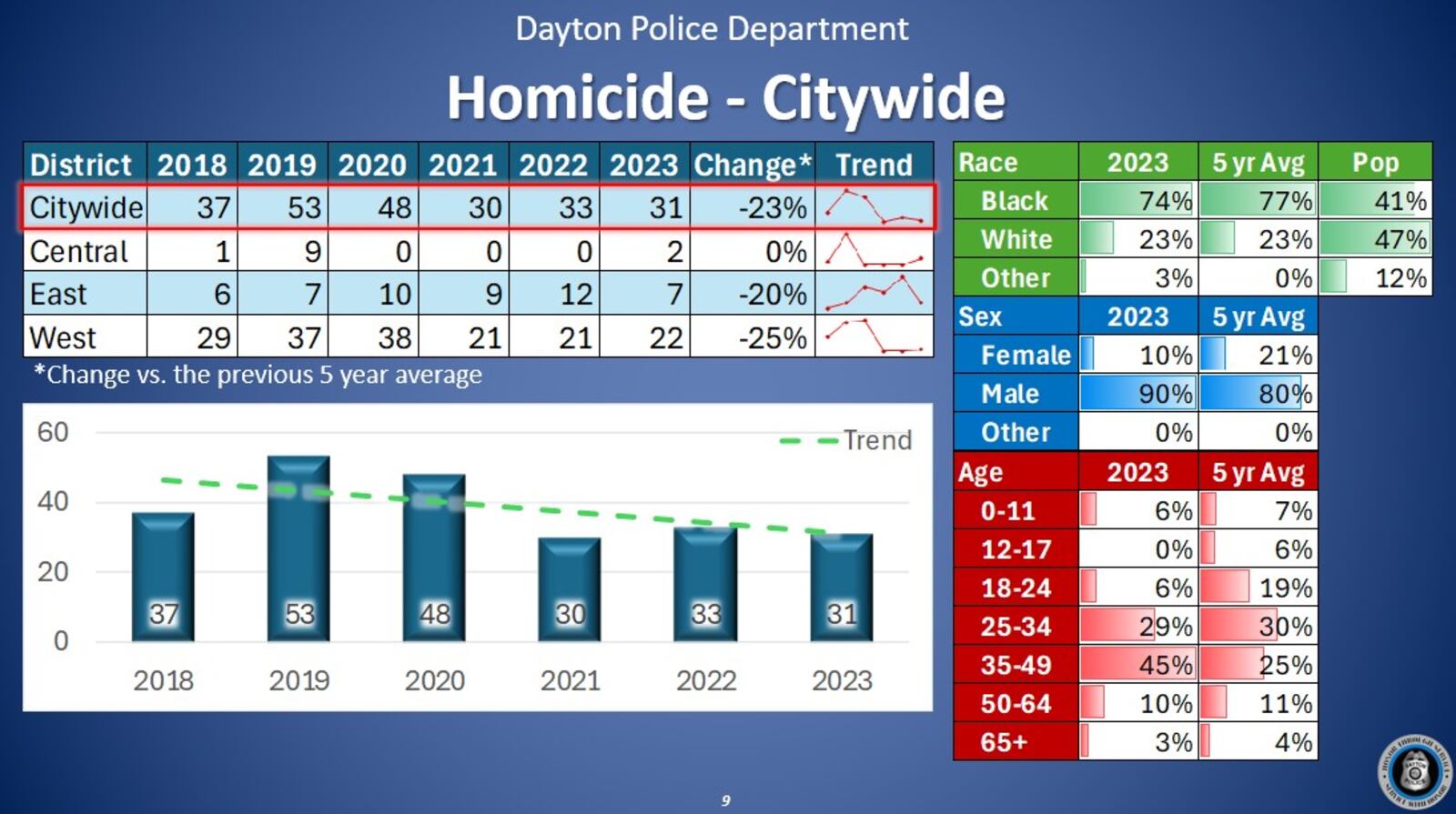 Last year, 21 of the 30 “unjustified” homicides that happened in Dayton (70%) took place in the Dayton Police Department’s West District, which covers everything west of the river, the police department said.
