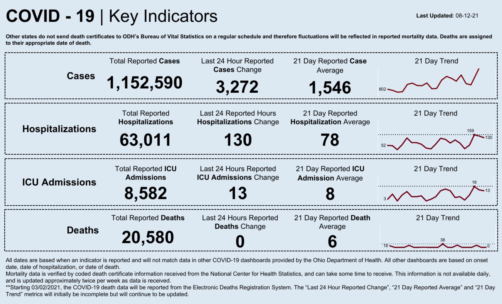 “We’re continuing to see a troubling increase of COVID 19 cases statewide,” ODH Director Dr. Bruce Vanderhoff said Thursday. “The increases in cases and hospitalizations can largely be contributed to the delta variant.”