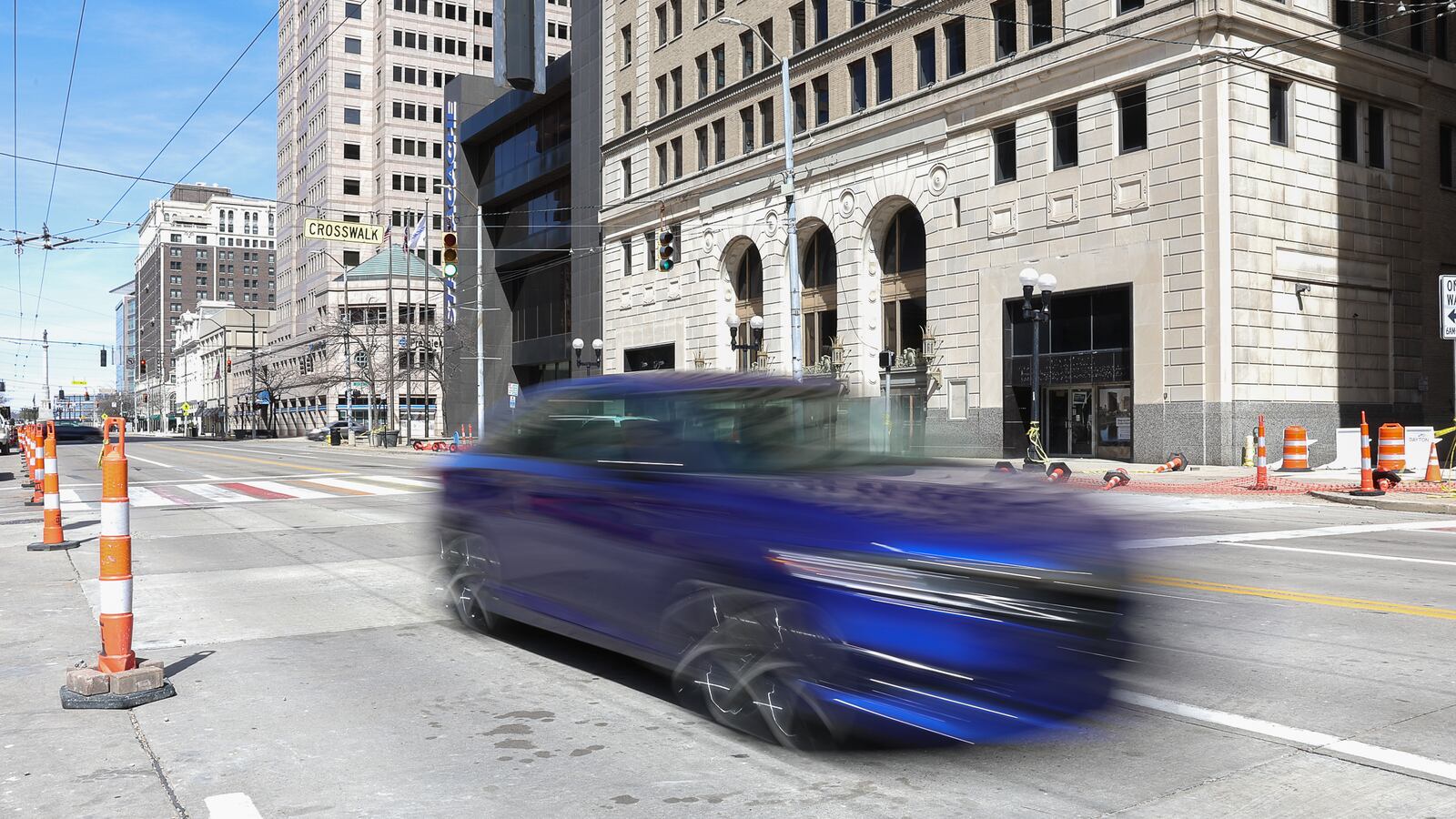 The north side of the former Key Bank building or Paru Tower fell into an alley below as well as onto Stratacache Tower, damaging several windows.