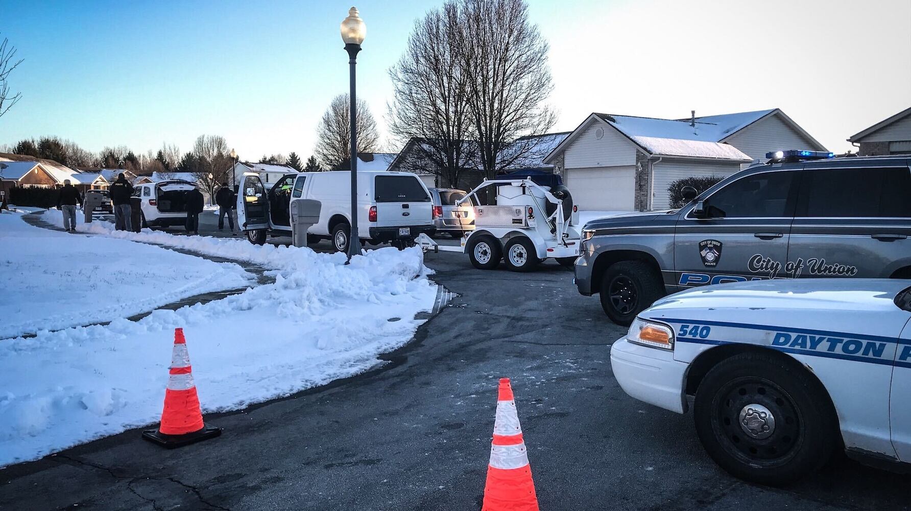 The Dayton Bomb Squad responded to an explosion followed by smoke seen Tuesday, Feb. 2, 2021, at a house in the 100 block of Warner Drive in Union. JIM NOELKER/STAFF