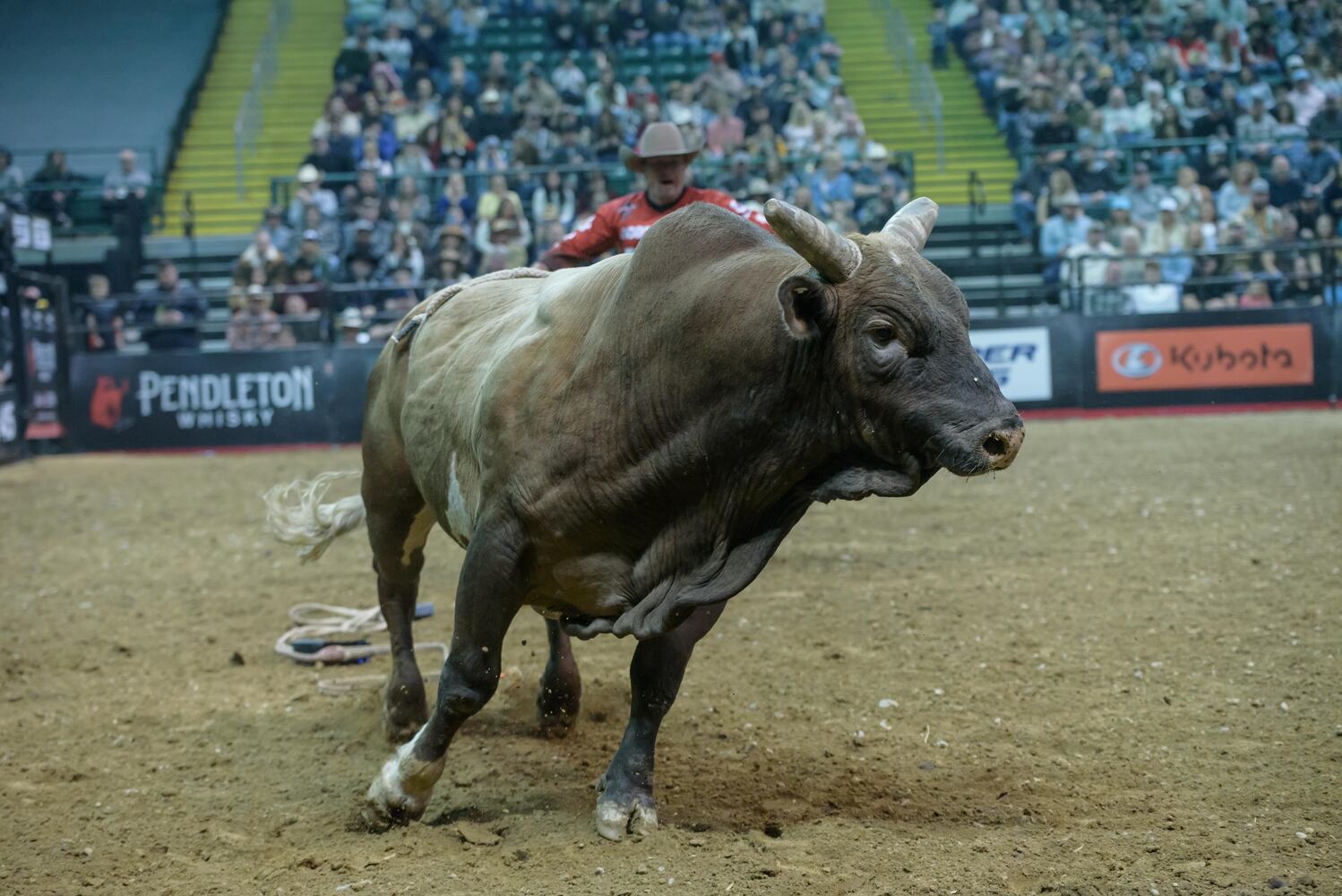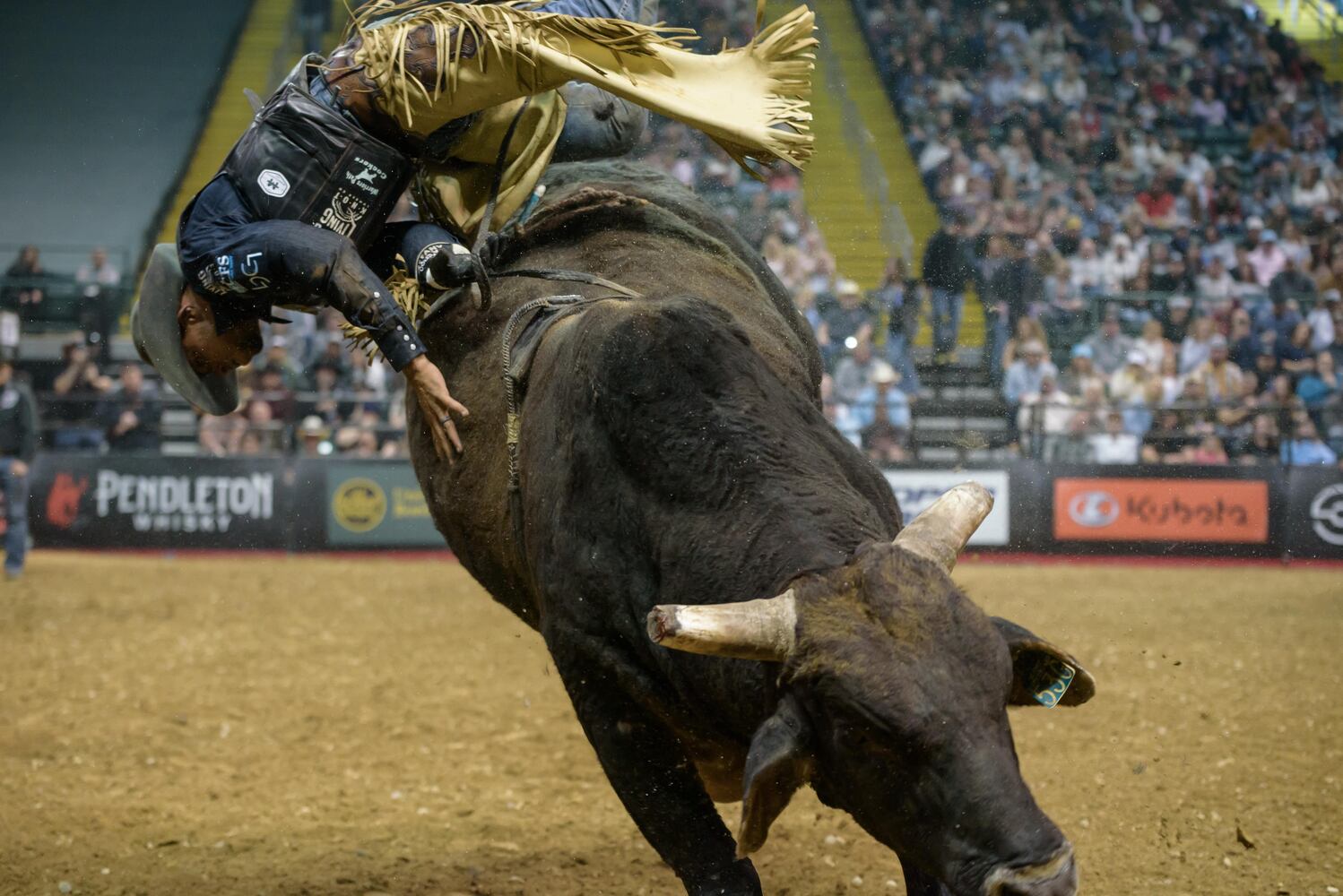 The Professional Bull Riders aka Cooper Tires PBR Pendleton Whisky Velocity Tour stopped at Wright State University’s Nutter Center in Fairborn for two nights of cowboys and bucking bulls on Friday, March 21 and Saturday, March 22, 2025. Here’s a look at Saturday’s action. Michael Lane of Tazewell, Virginia won the Dayton event with a perfect 3-for-3 performance. Dayton born Eli Vastbinder of Statesville, North Carolina tied for 11th place. TOM GILLIAM / CONTRIBUTING PHOTOGRAPHER