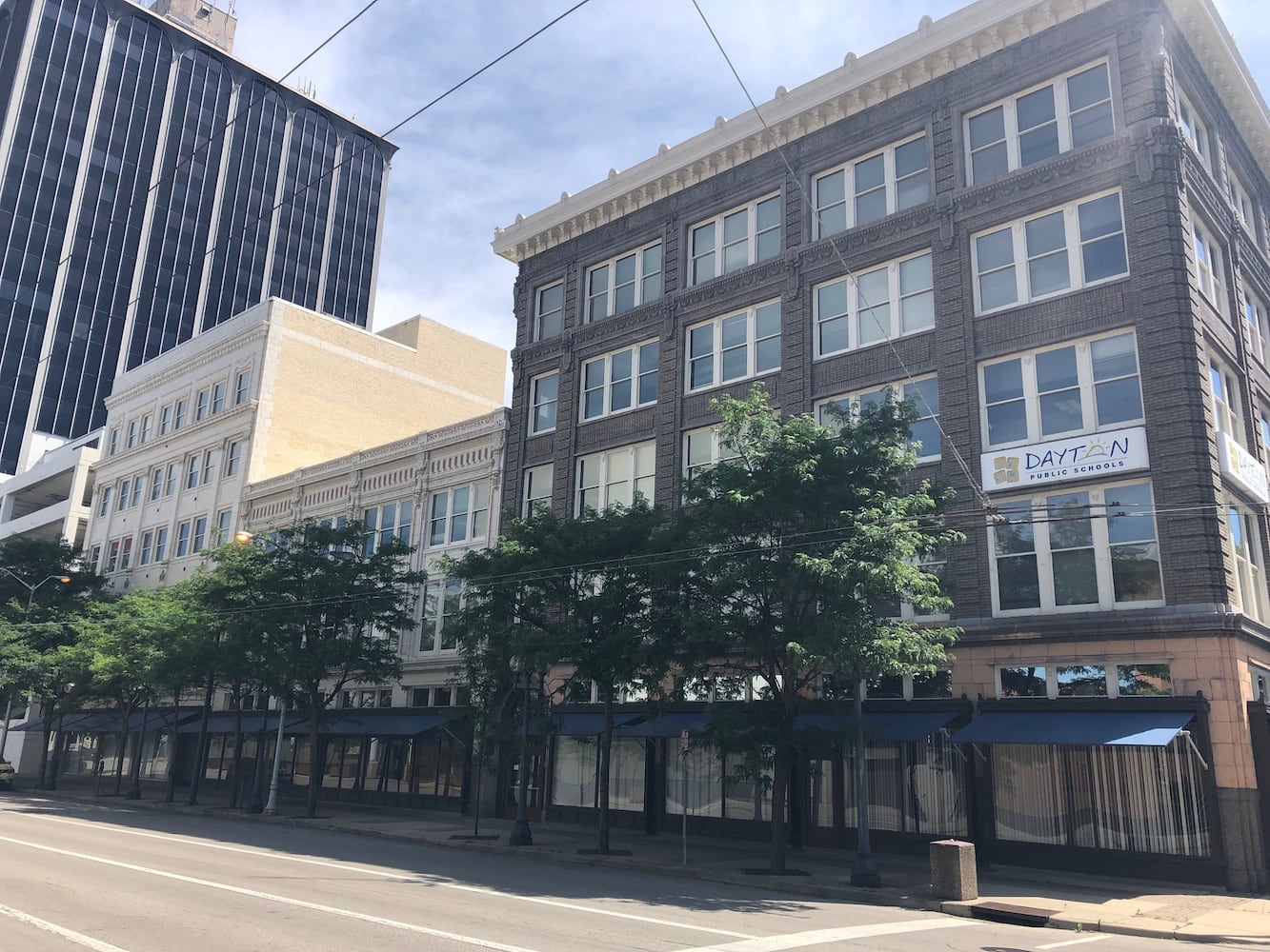 Dayton Public Schools' new headquarters complex at 136 S. Ludlow St. includes the six-story beige building at left, the short building in the middle and the five-story building at right, which sits at the corner of Fifth and Ludlow. JEREMY P. KELLEY / STAFF