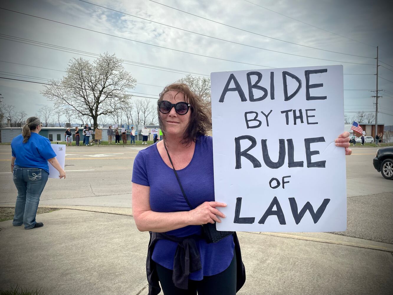 A crowd of more than 100 people lined both sides of West Dorothy Lane in front of the Tesla Service Center in Moraine on Saturday, March 29 as part of a nationwide “Tesla Takedown” movement. NATALIE JONES/STAFF