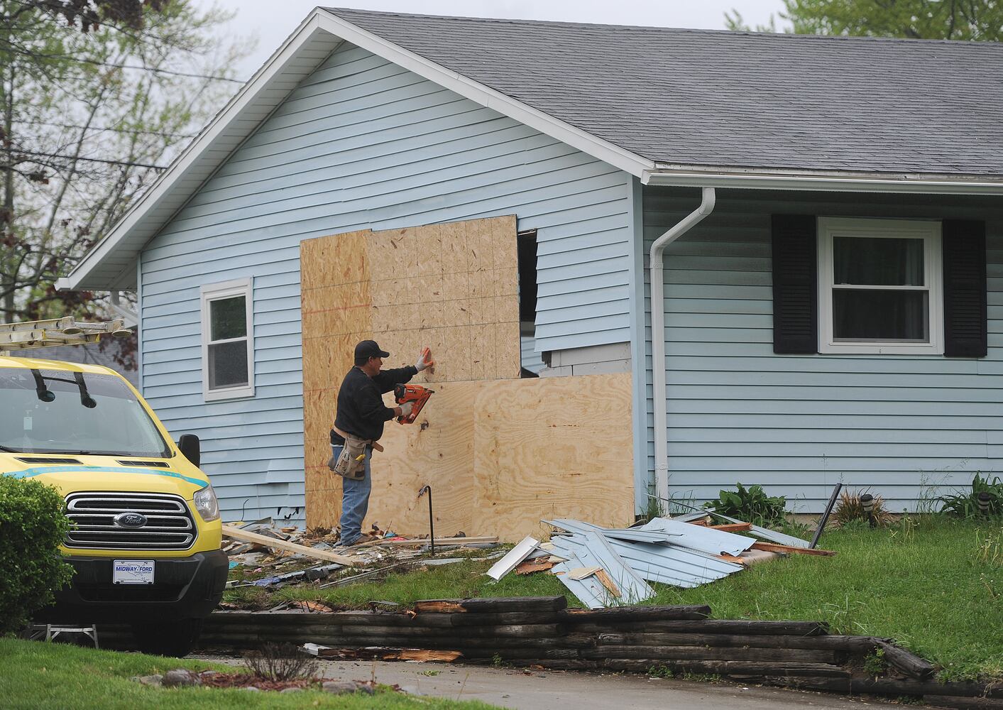 A Chevrolet Monte Carlo crashed into a home in the 4000 block of Fleetwood drive early Monday morning. Deputies said the suspected intoxicated driver missed a turn. Minor injuries were reported. MARSHALL GORBY/STAFF