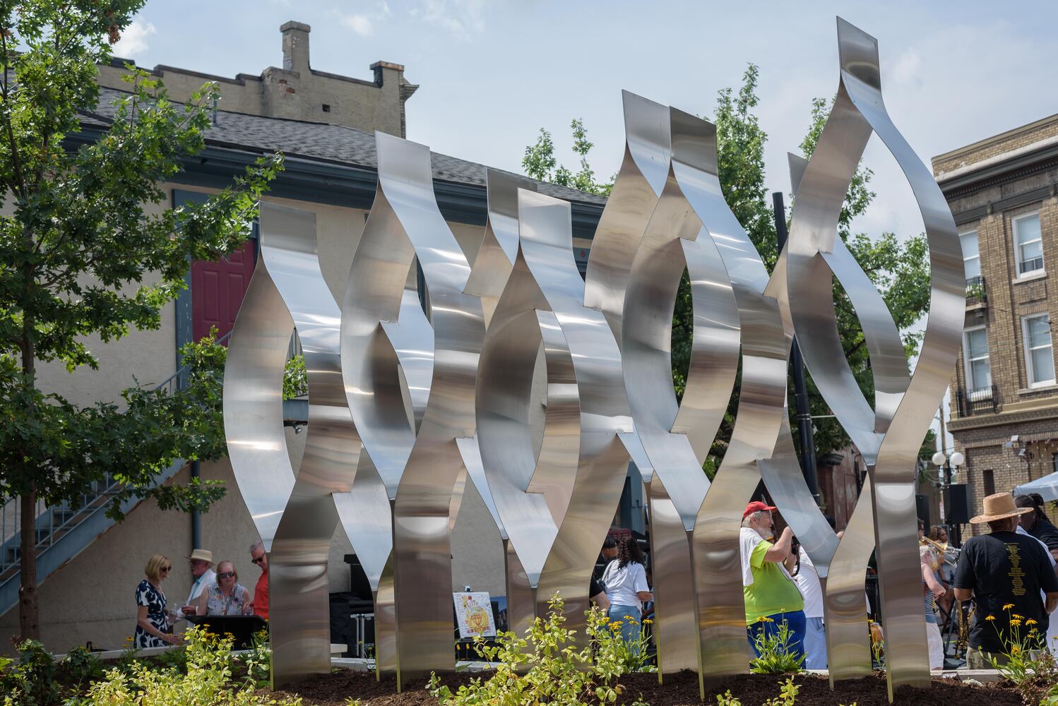 Here are scenes from the unveiling and dedication ceremony for The Seed of Life 8/4 Memorial, located at 530 E. Fifth St. in The Oregon District next to The Trolley Stop on Sunday, Aug. 4, 2024. The memorial, created to honor the victims of the Aug. 4, 2019 Oregon District shooting, is a collaboration by Terry Welker, Jes McMillan, Sierra Leone, and James Pate with help from 5,000 volunteers. TOM GILLIAM / CONTRIBUTING PHOTOGRAPHER