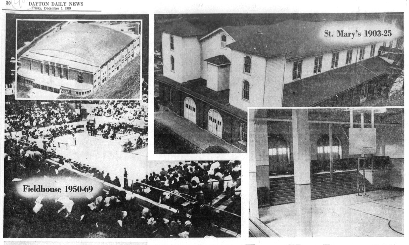 It started in 1903 with a red brick building known as “Old Gym” on the campus of St. Mary’s college, the forerunner to the University of Dayton. The fact that this building did not have any restrooms was reflected in the headline for this story. The building only had room for about 300 fans.