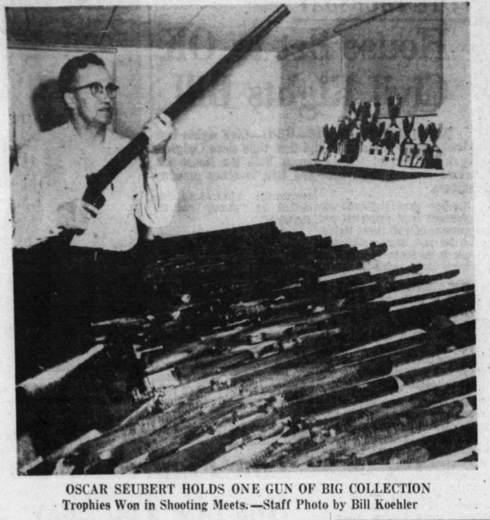 At the time the story was written, Seubert had 49 rifles, shotguns and pistols, some more than 100 years old. He was especially proud of a muzzle-loader that was fired by Annie Oakley.