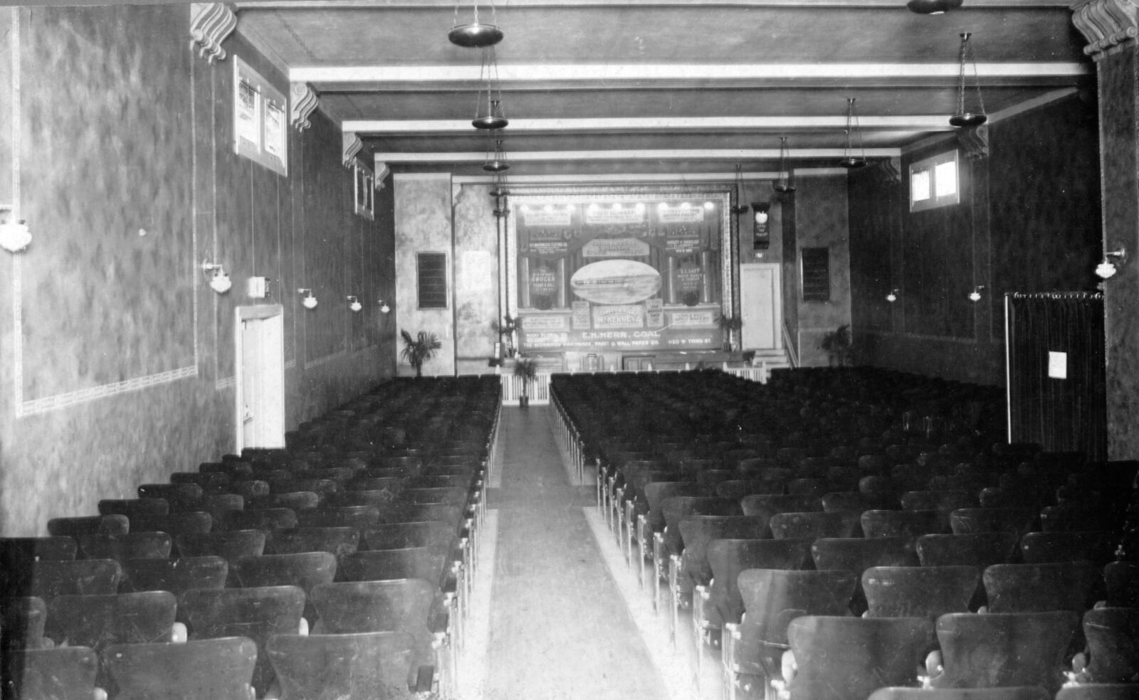 By May 1908, the building, located at 32 E. Fourth St., became the Auditorium Theatre, with two screens, one on the main floor and one the second floor. The main lower auditorium seated 1,040.