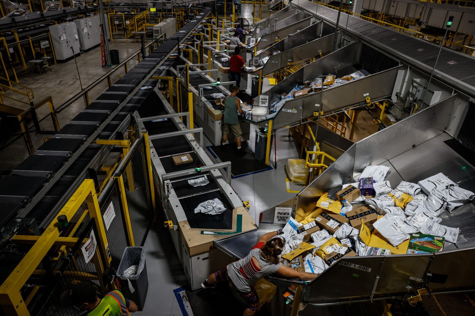 If packages are damaged or missing labels, they end up in a “problem-solving” area, where employees rely on a proprietary Amazon software system to determine destinations and repackage.