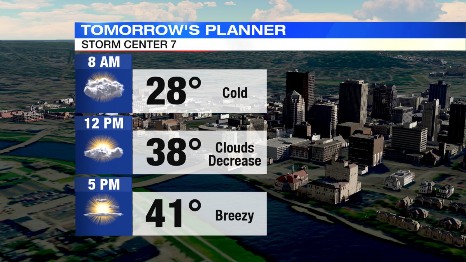 Overnight: More clouds will arrive overnight, however it will stay dry and cold with lows reaching the upper 20s, Storm Center 7 Chief Meteorologist McCall Vrydaghs said.