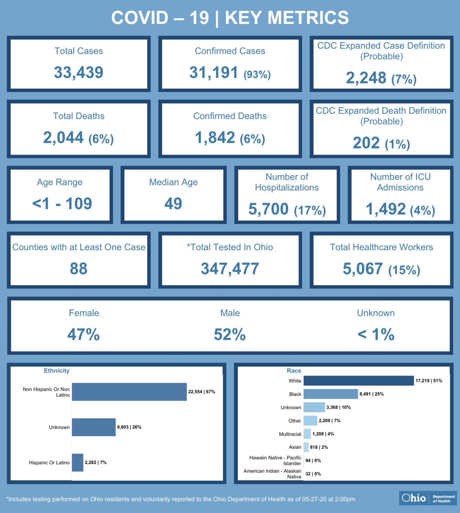 Also on Tuesday, pools, fitness centers, mini golf, batting cages, bowling alleys and Ohio Bureau of Motor Vehicle offices were able to reopen.