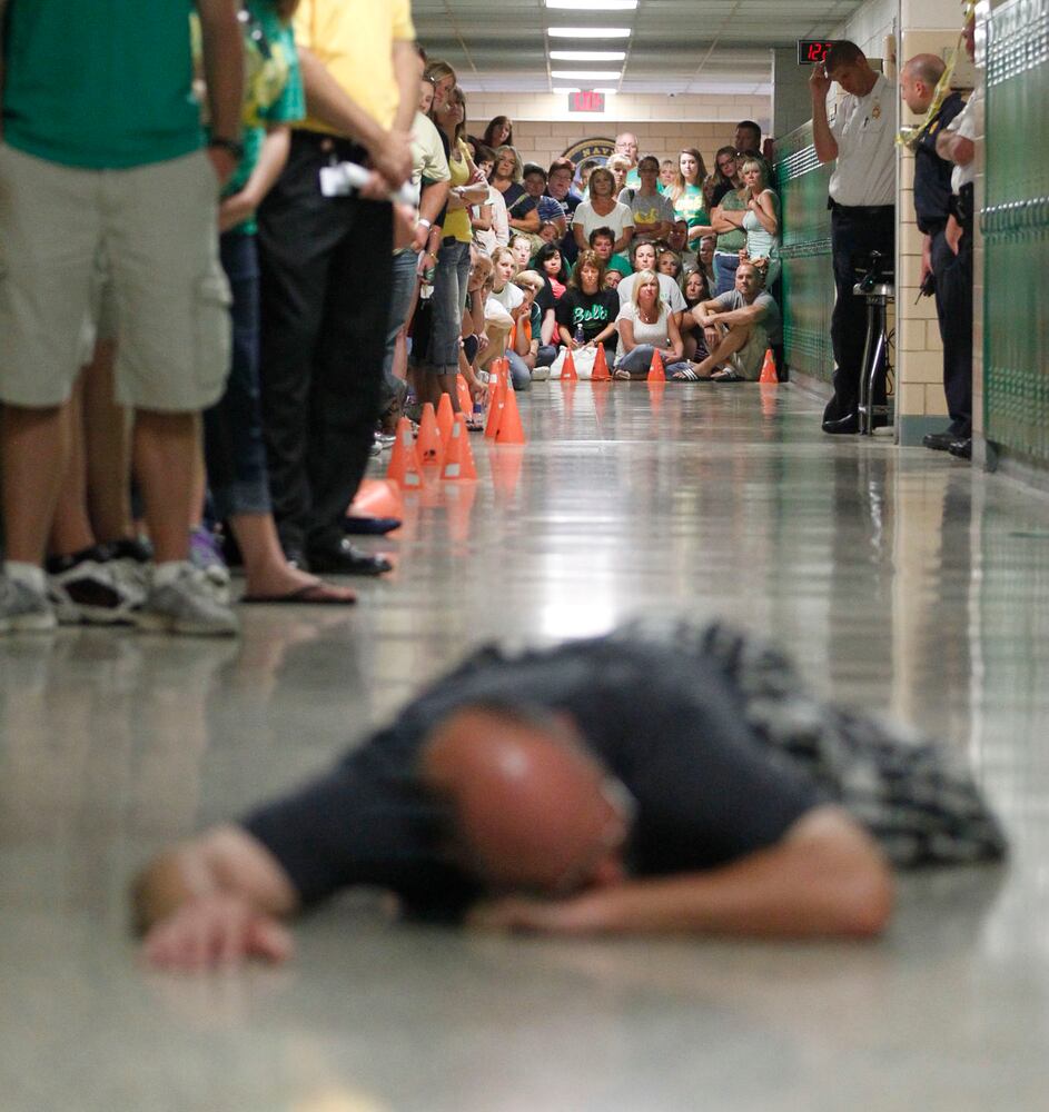 Northmont City Schools officials and police officers from Englewood, Clayton and Union staged a school shooting exercise with teachers and administrators on Friday to train for potential emergency situations. TY GREENLEES / STAFF