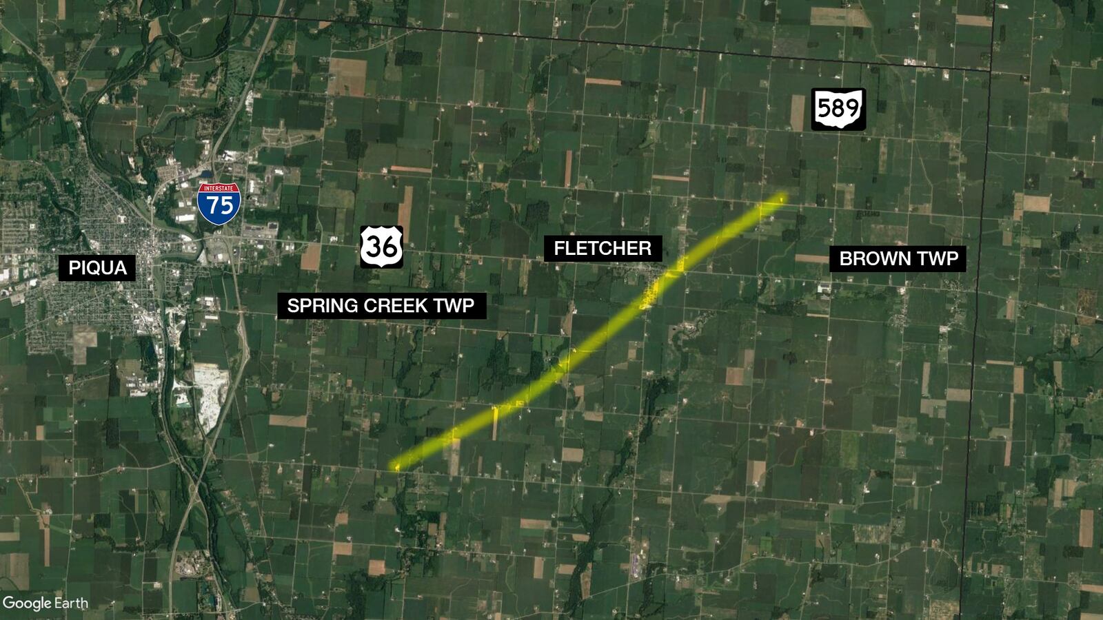 “Sporadic damage” occurred in a northeast direction, crossing the south side of Fletcher - which is northeast of Troy - and ending near the intersection of Burr Oak-New Hope Road and Snyder Road, according to the NWS.