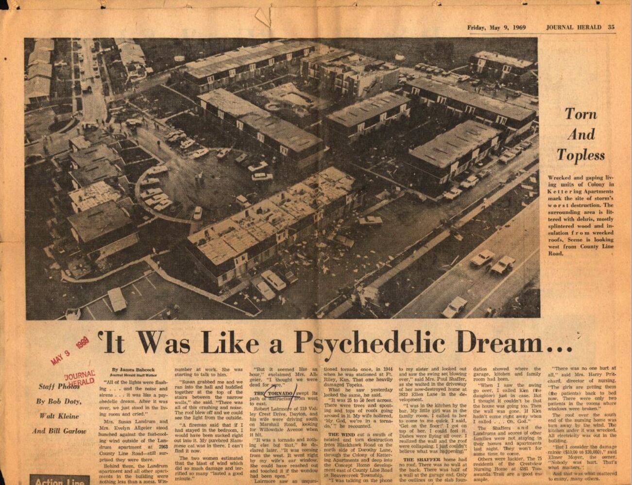 In the early evening hours of May 8, 1969, residents in Kettering and Beavercreek Twp. were surprised by a powerful EF 3 tornado. The storm injured around two dozen people and damaged hundreds of homes and buildings, mostly in the Kettering area. Meteorologists at the time described the tornado as a freak event developing suddenly out of a unique weather pattern.