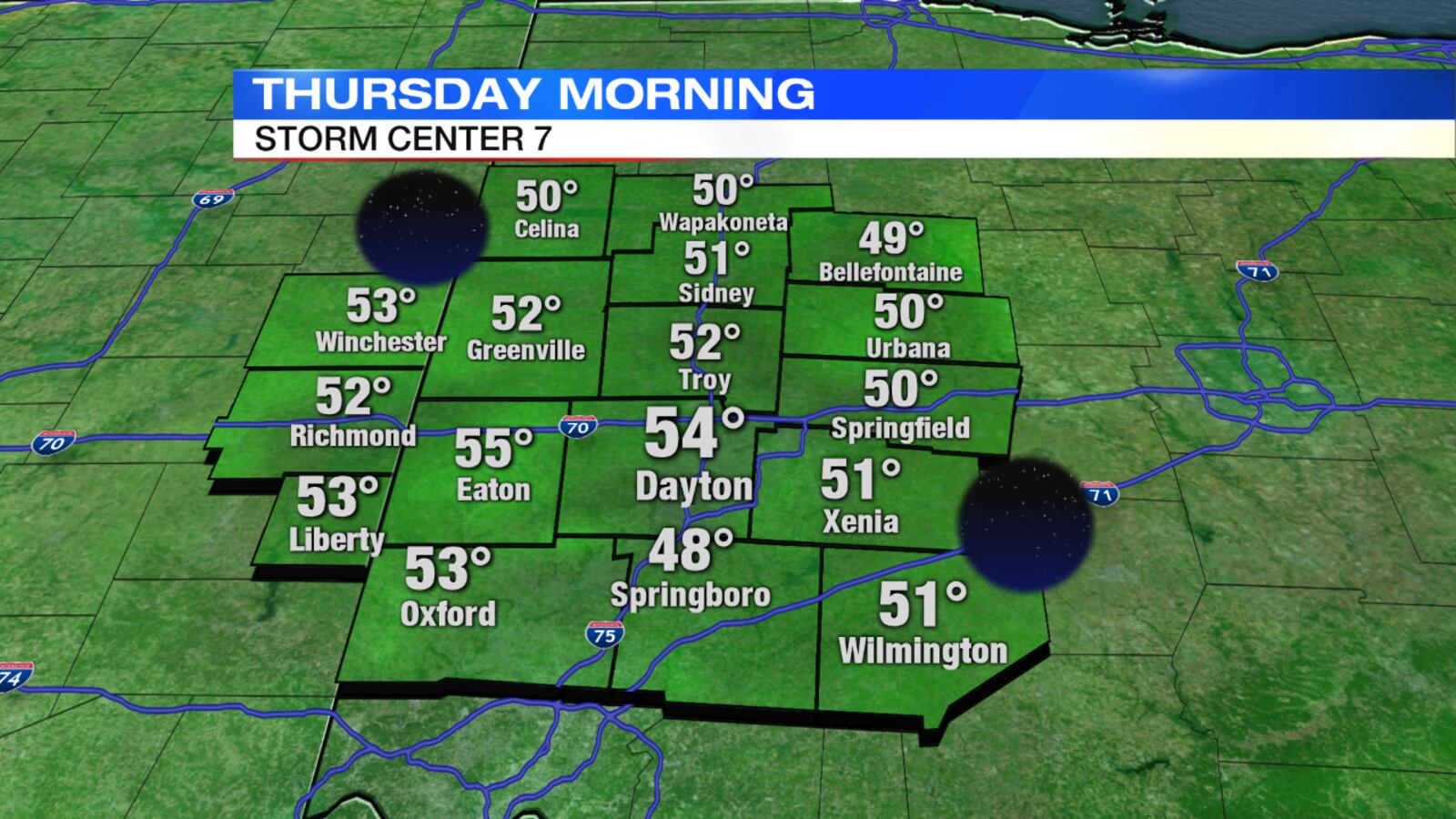 TONIGHT: A cool night is expected under clear skies. Temperatures will drop into the lower to middle 50s by morning.