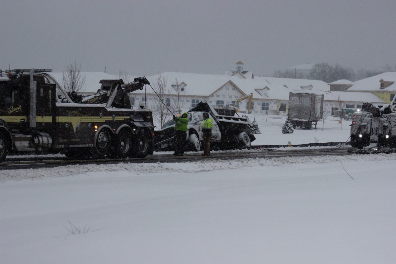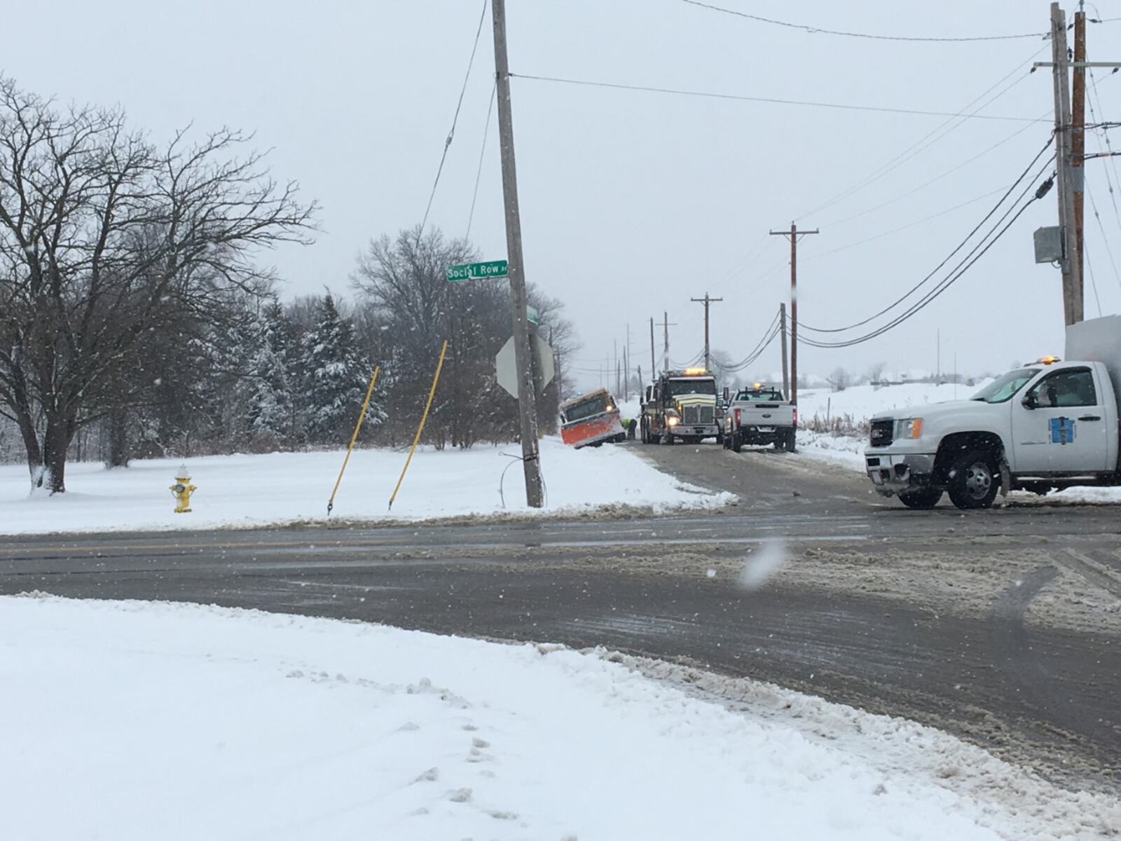 - On Paragon Road at Social Row Road in Washington Twp., is reportedly closed after a Centerville salt truck with a plow slid off the road on Paragon Rd. while a private salt truck slid off of Social Row Rd. at 8:40 a.m. Tow trucks are assisting.