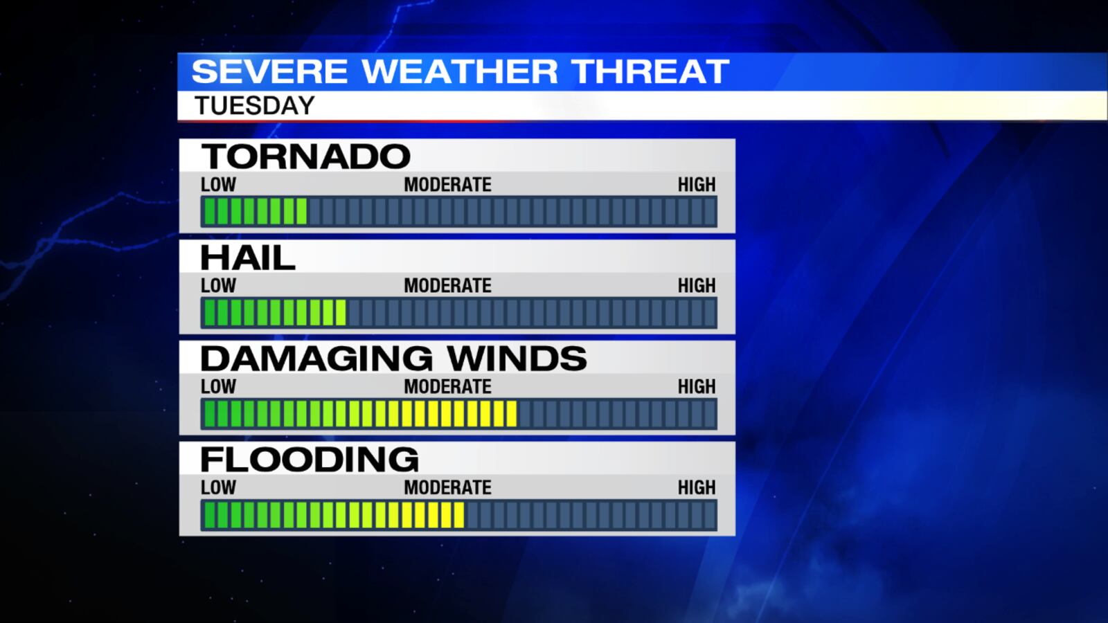- Thunderstorms likely Tuesday evening