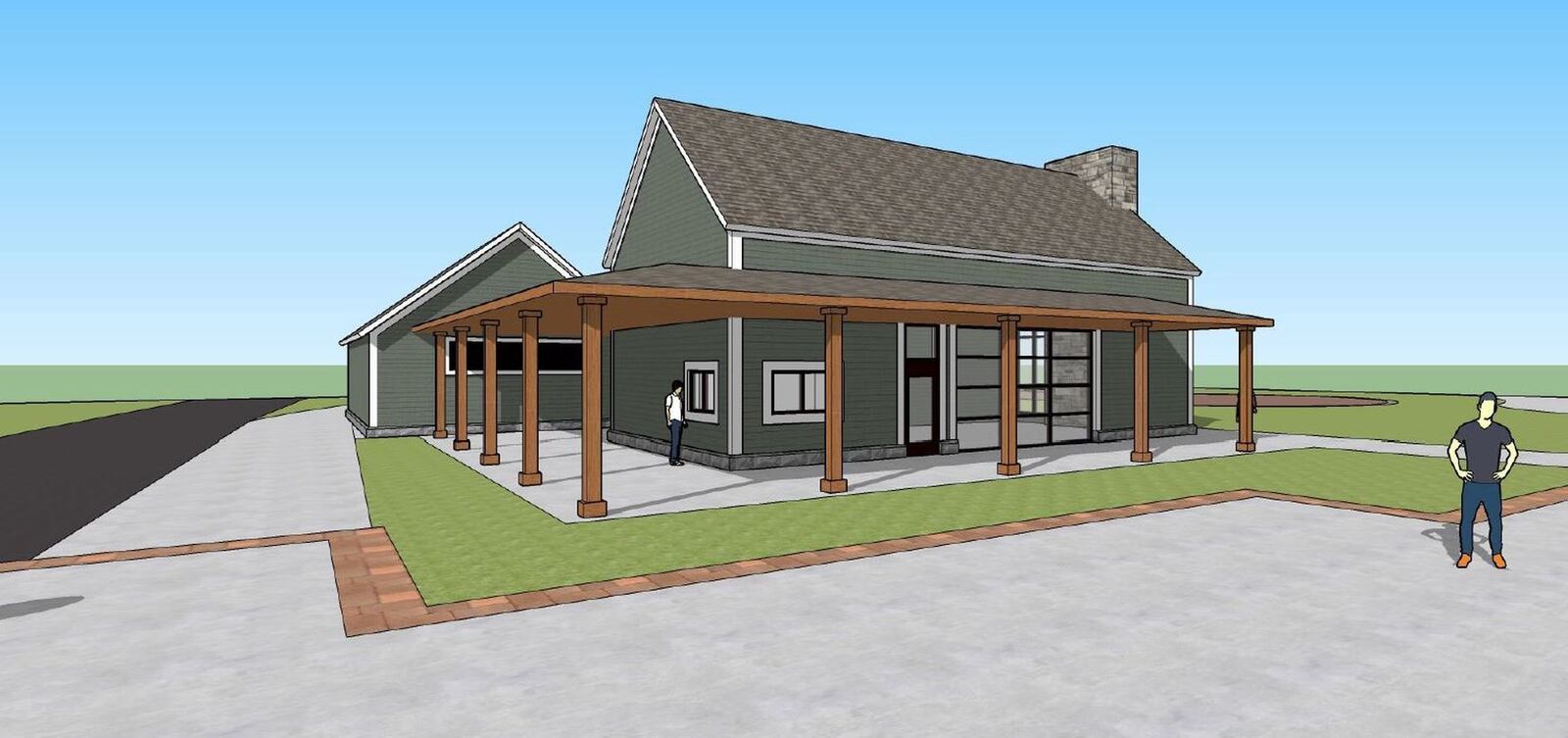 Another adjacent building would be a dedicated restroom with a separate entrance for park goers and that would share the covered porch attached to all three buildings.
