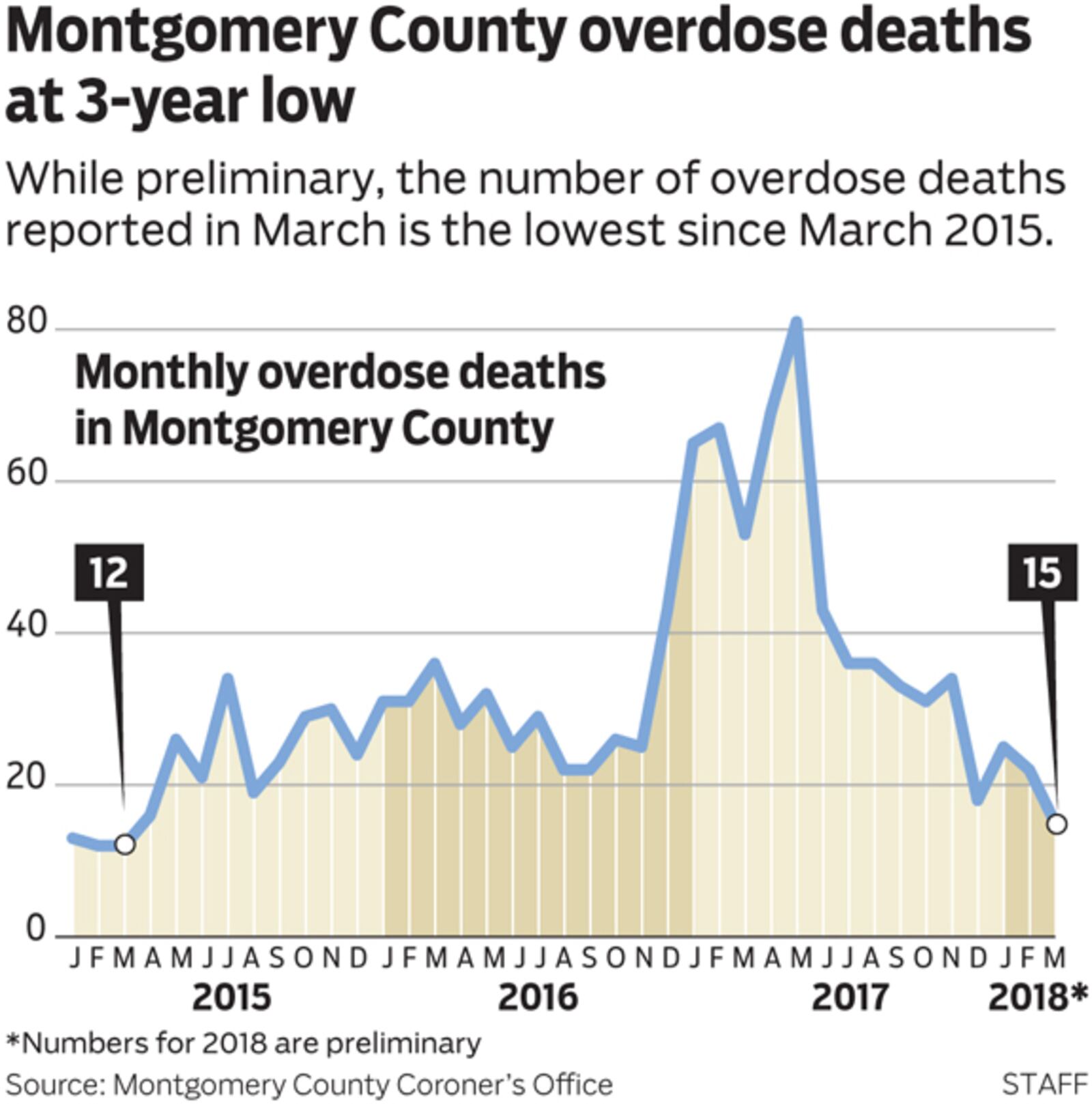 “Just because the death rates are down doesn’t mean addiction has disappeared in Montgomery County,” she said. “It just means the substances being used are different.”