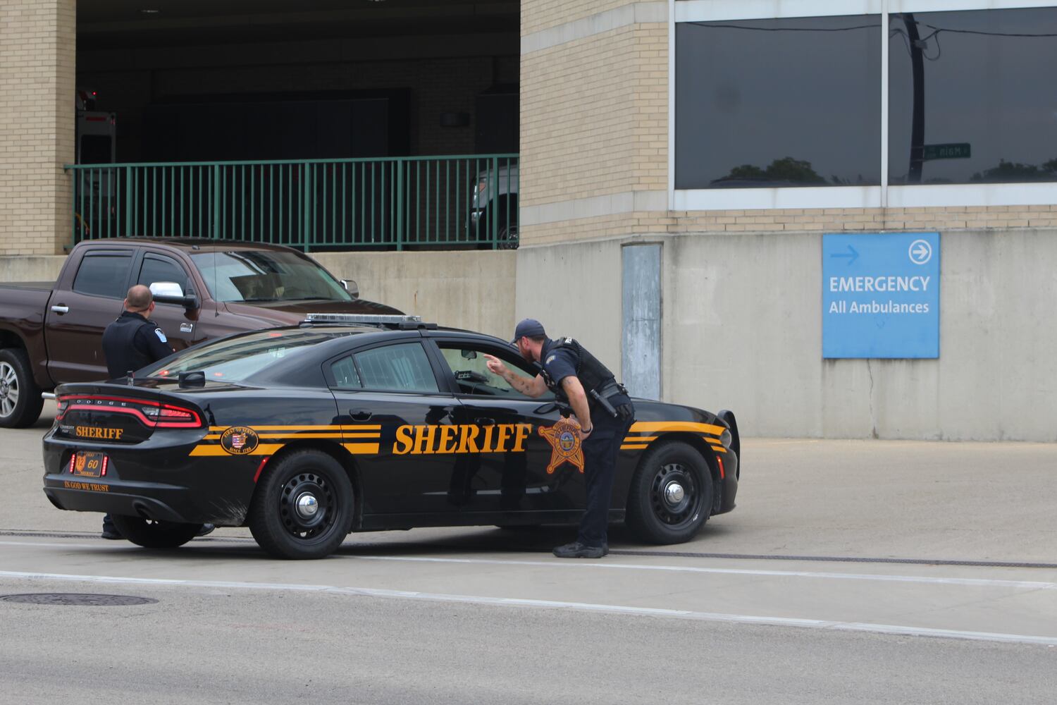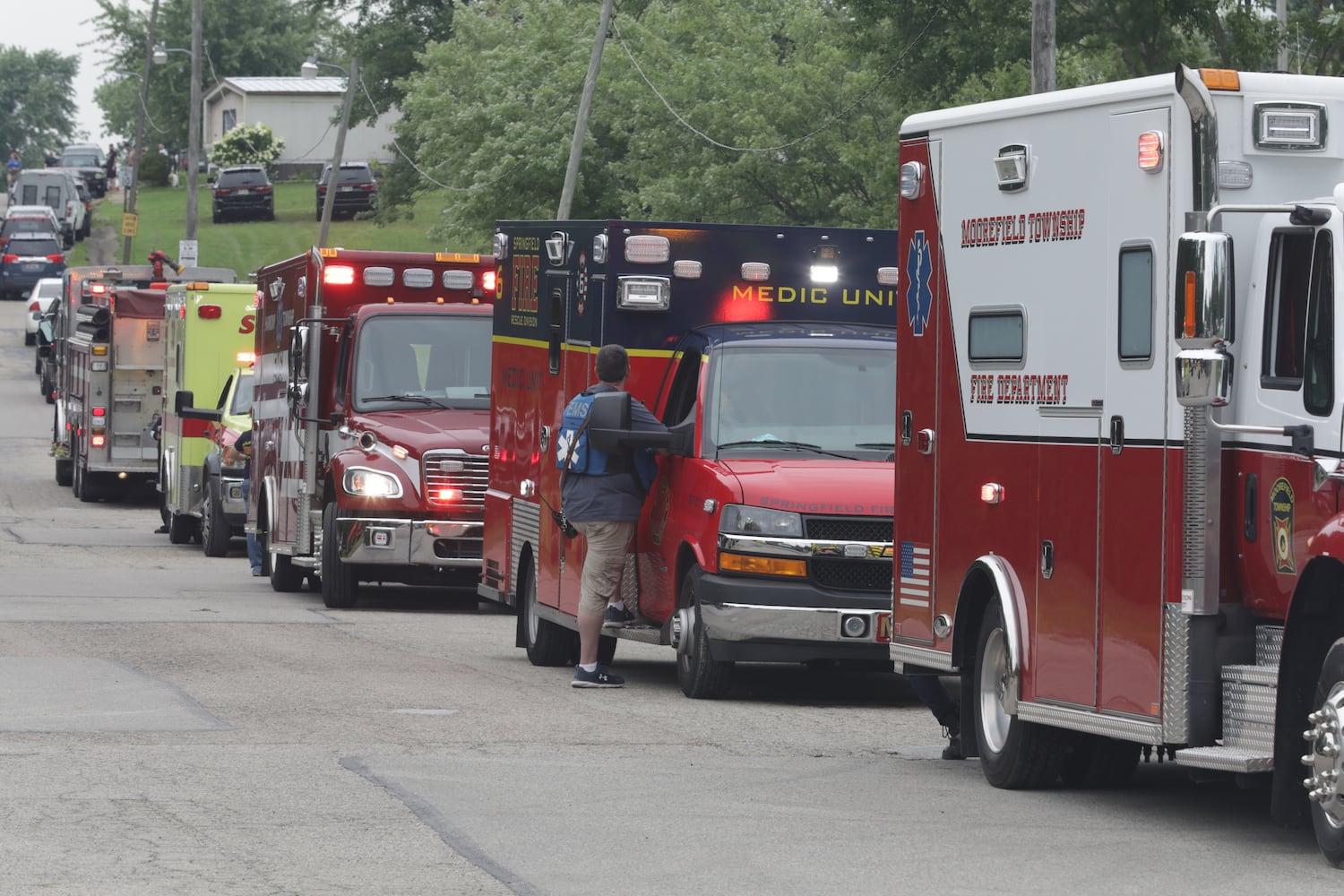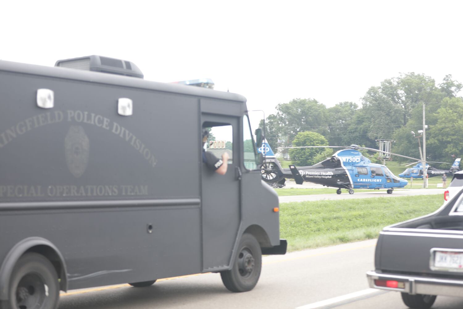 Law enforcement officers from many different jurisdictions met at Northeastern High School for a briefing with BCI after the shooting at Harmony Estates Sunday, July 24, 2022. MARSHALL GORBY/STAFF