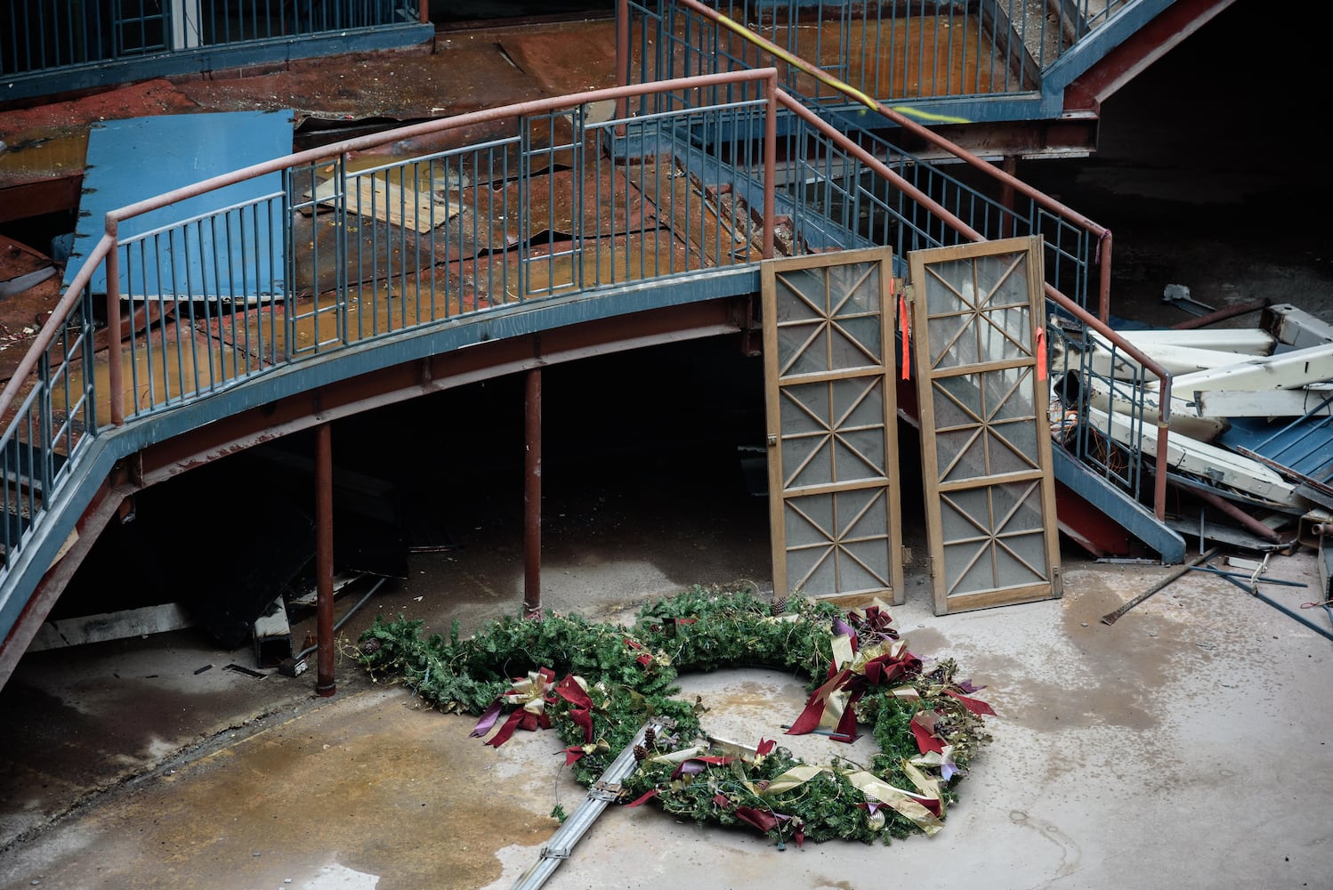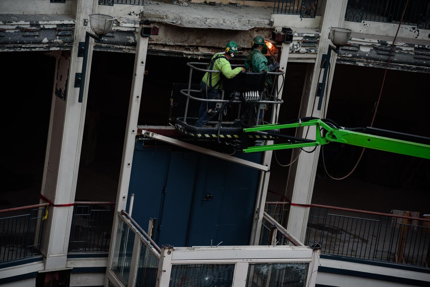 The re-glazing of the Dayton Arcade rotunda's glass dome was completed on June 14, 2019. Heading up the project was Todd Wilde, Renovation Manager with Super Sky Products Enterprises. The installation team was led by Cary Beaven with Skylight Consultants of America. This gallery also shows removal of the Arcade Square era (1980-1993) elevator, cleanup of the McCrory Building to make way for the Arcade Innovation Hub LLC, a joint venture of the University of Dayton and the Entrepreneurs Center and exterior masonry work on the Arcade's 4th Street Building. TOM GILLIAM / CONTRIBUTING PHOTOGRAPHER