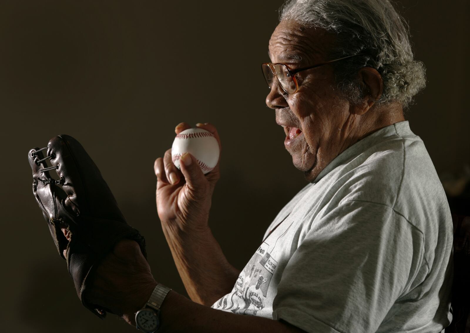He steadied himself on his cane and then made his way over to his old ball glove with the pillowy fingers and a small patch of leather that covered his hand. He put it on, patted in the pocket and suddenly he was working his way to that fly ball between he and Bell more than a half century earlier