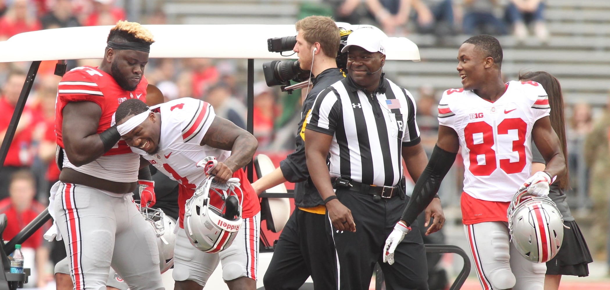South defensive lineman Robert Landers of Wayne High School (53) targets North QB Jake Floriea of Mentor. The North defeated the South 24-14 in the big-school 70th annual OHSFCA North-South Classic at Welcome Stadium on Saturday, April 25, 2015. MARC PENDLETON / STAFF