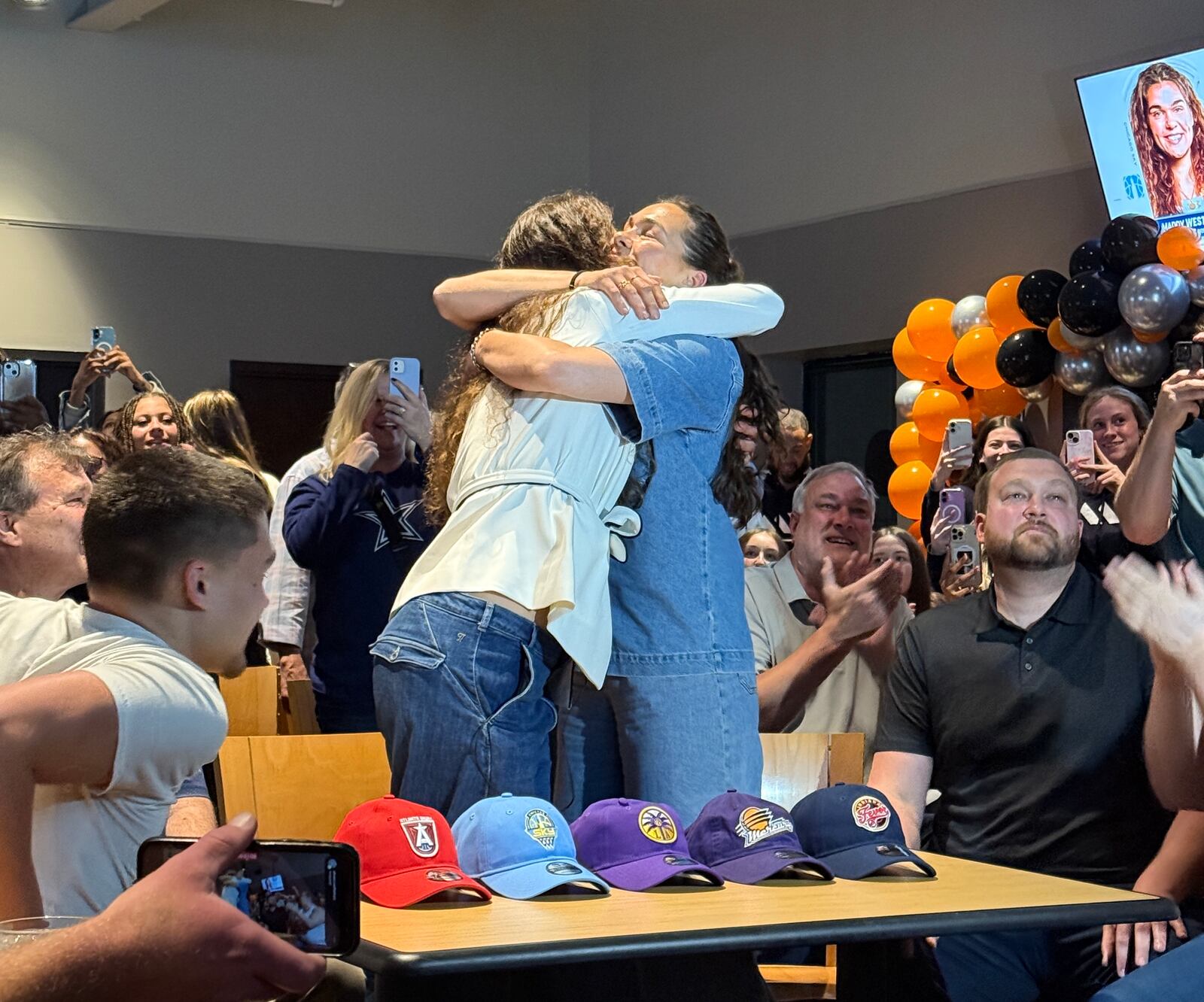 The family sat patiently for more than 90 minutes after the WNBA broadcast began, but the back room at the Buffalo Wild Wings in Kettering erupted in cheers when the announcement was made.