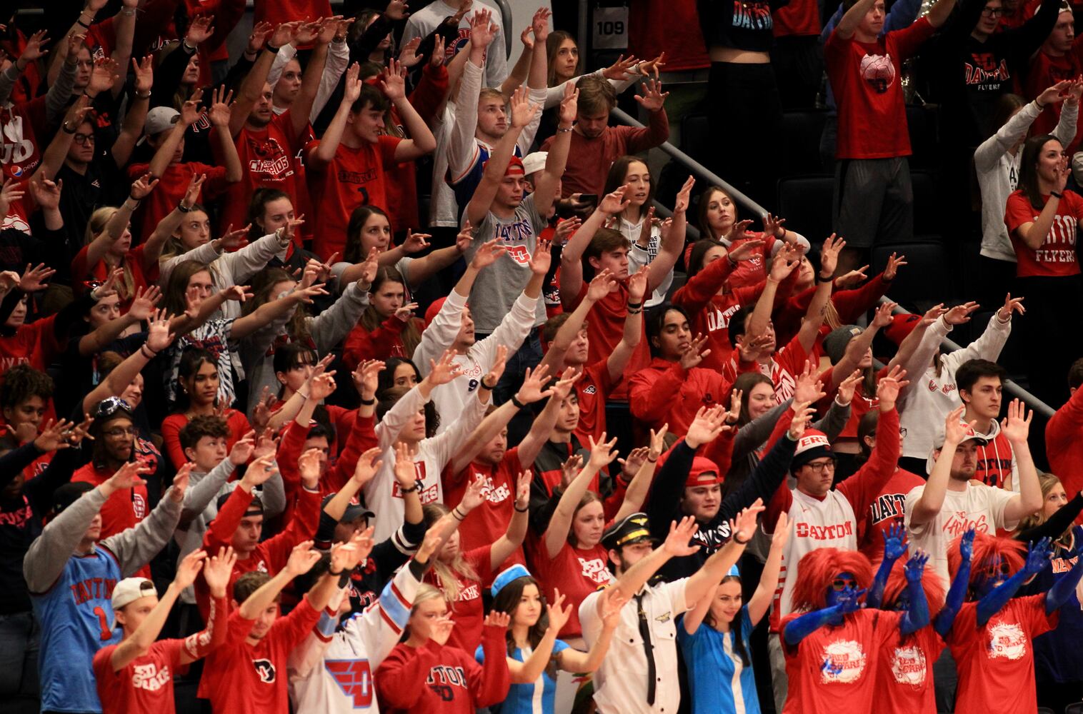 Dayton fans cheer on Sunday, Dec. 22, 2013, at UD Arena.