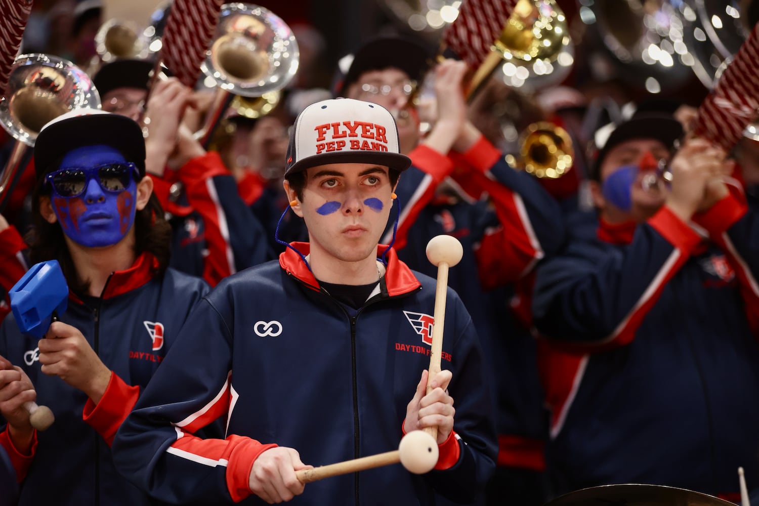 The Flyer Pep Band plays before Dayton's game against Saint Joseph’s in the quarterfinals of the Atlantic 10 Conference tournament on Thursday, March 9, 2023, at the Barclays Center in Brooklyn, N.Y. David Jablonski/Staff