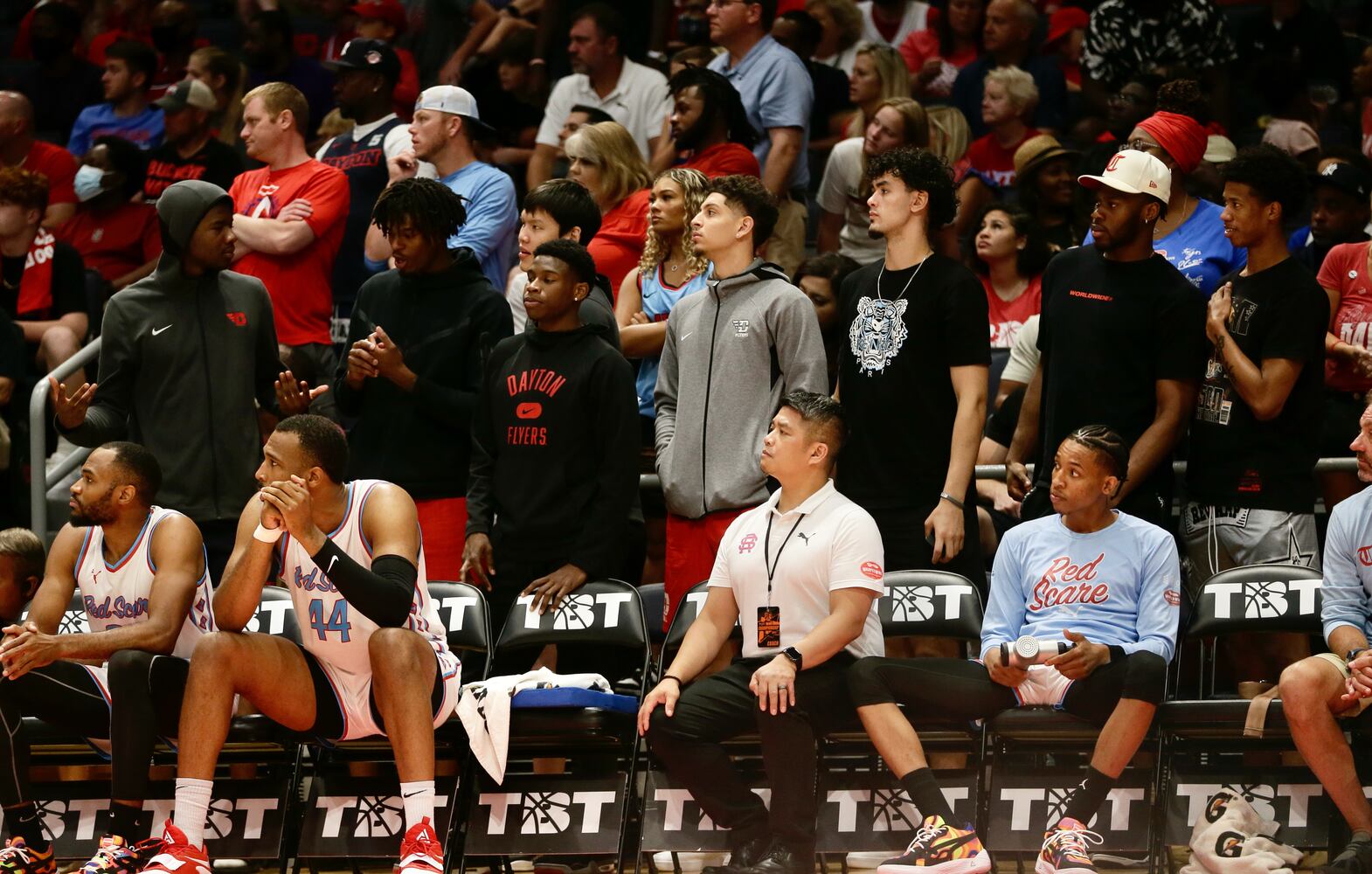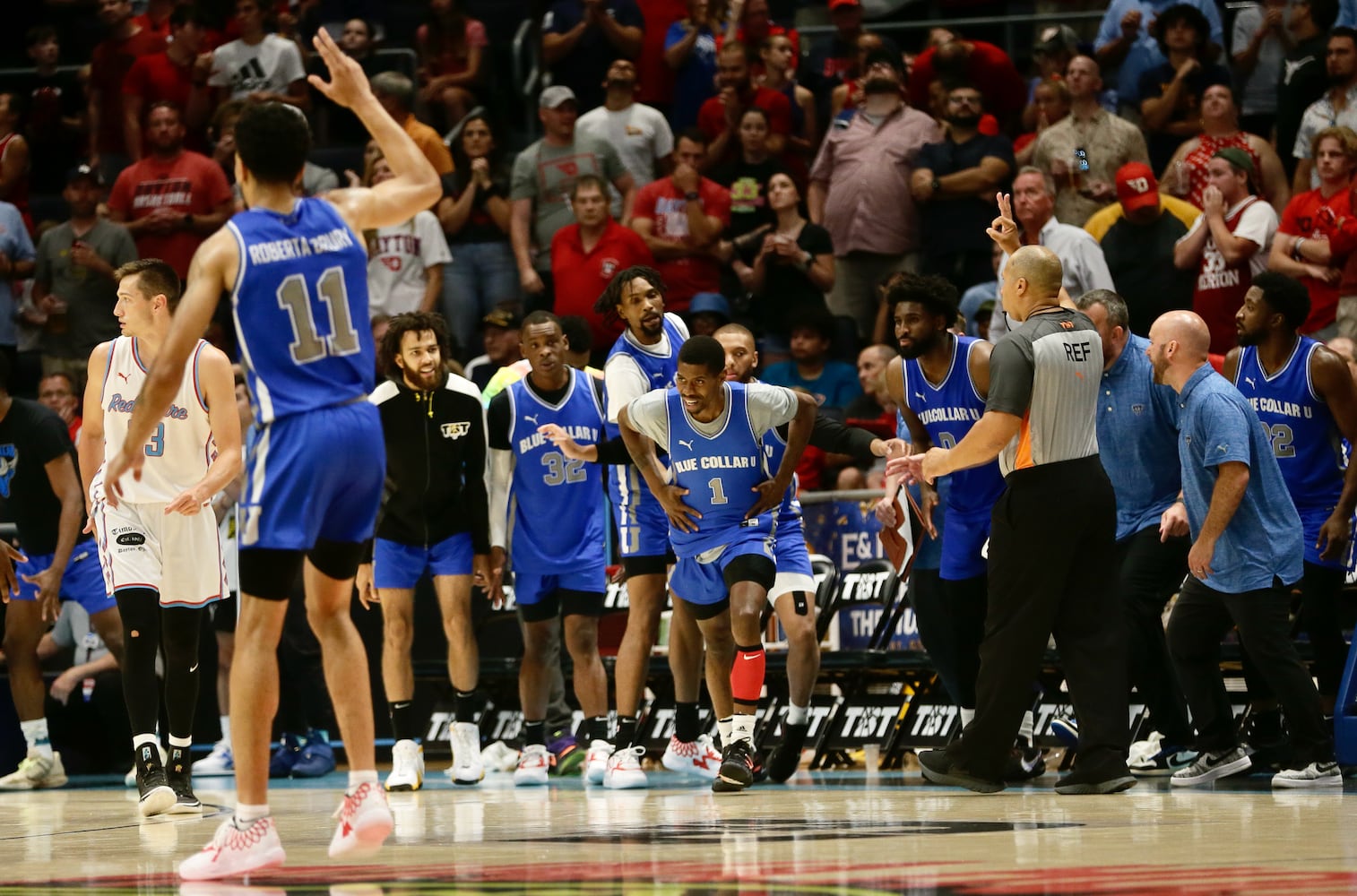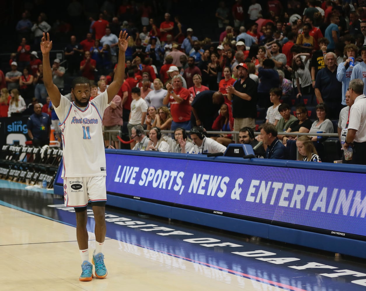 The Red Scare's Ryan Mikesell scores against Blue Collar U in the semifinals of The Basketball Tournament on Saturday, July 30, 2022, at UD Arena. David Jablonski/Staff